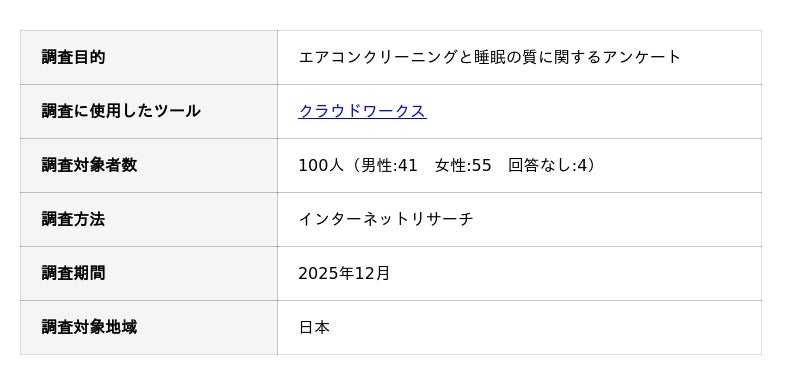 エアコンクリーニングと睡眠の質に関するアンケート調査の概要