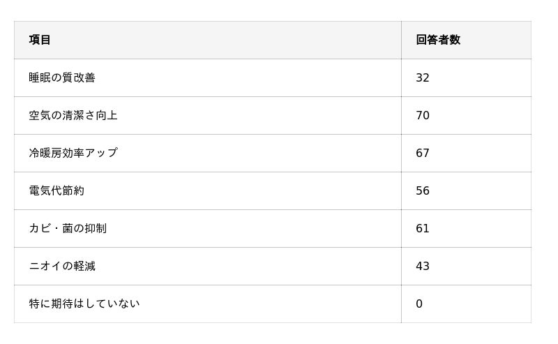 - 8割近くがエアコンの状態が睡眠に影響すると感じており、ニオイや汚れが気になって眠れないほどになることもある。