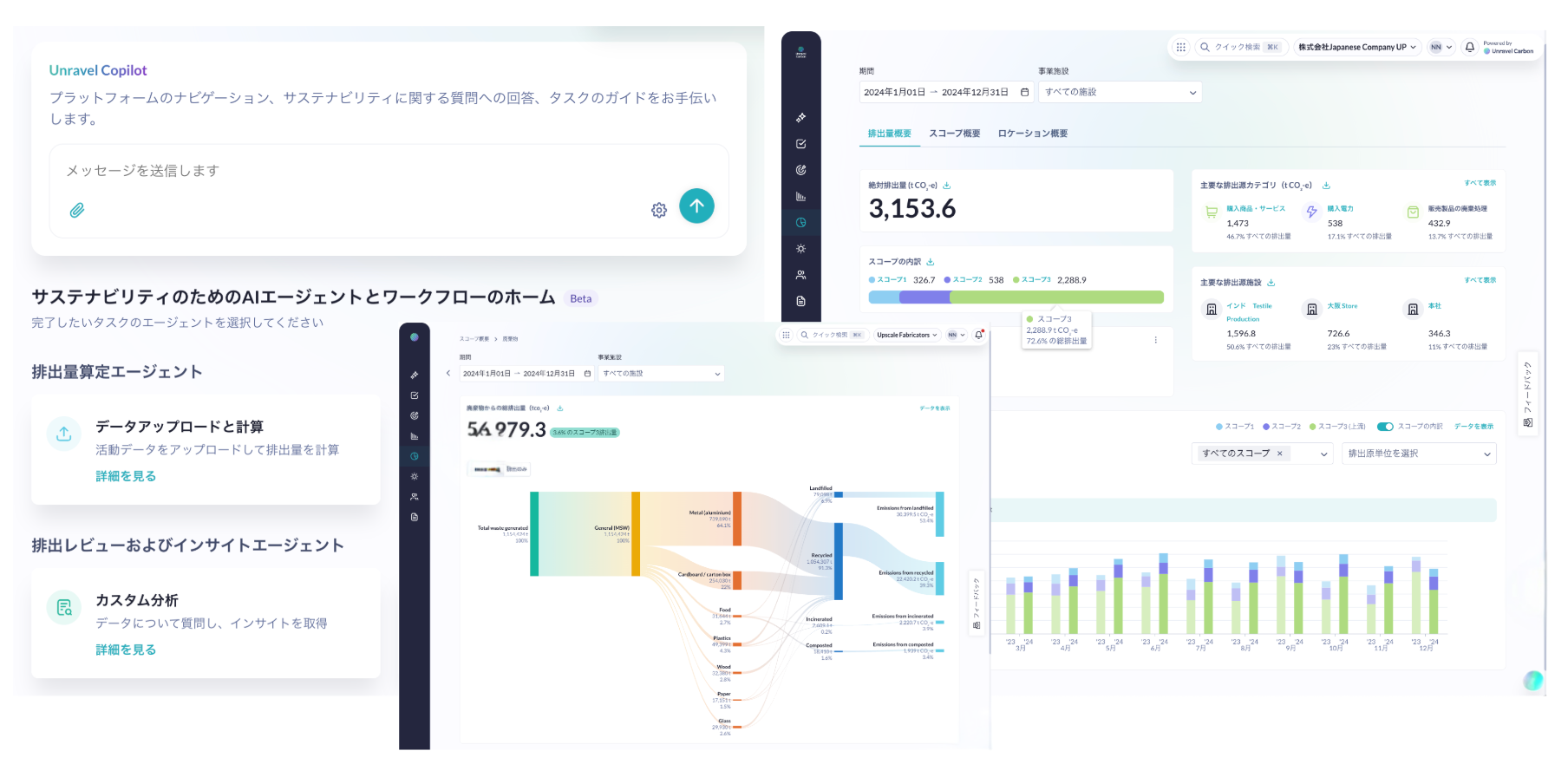 TOKYO - [2025年12月9日] - 世界初のサステナビリティ特化AIエージェントを搭載した企業向けサステナビリティ経営プラットフォームを提供する Unravel Carbon(アンラベル カーボン)は本日、東京オフィスを開設し、日本市場への本格参入を発表しました。Japan Energy FundとTIS株式会社からの戦略的投資を受け、国内での事業展開を本格化します。