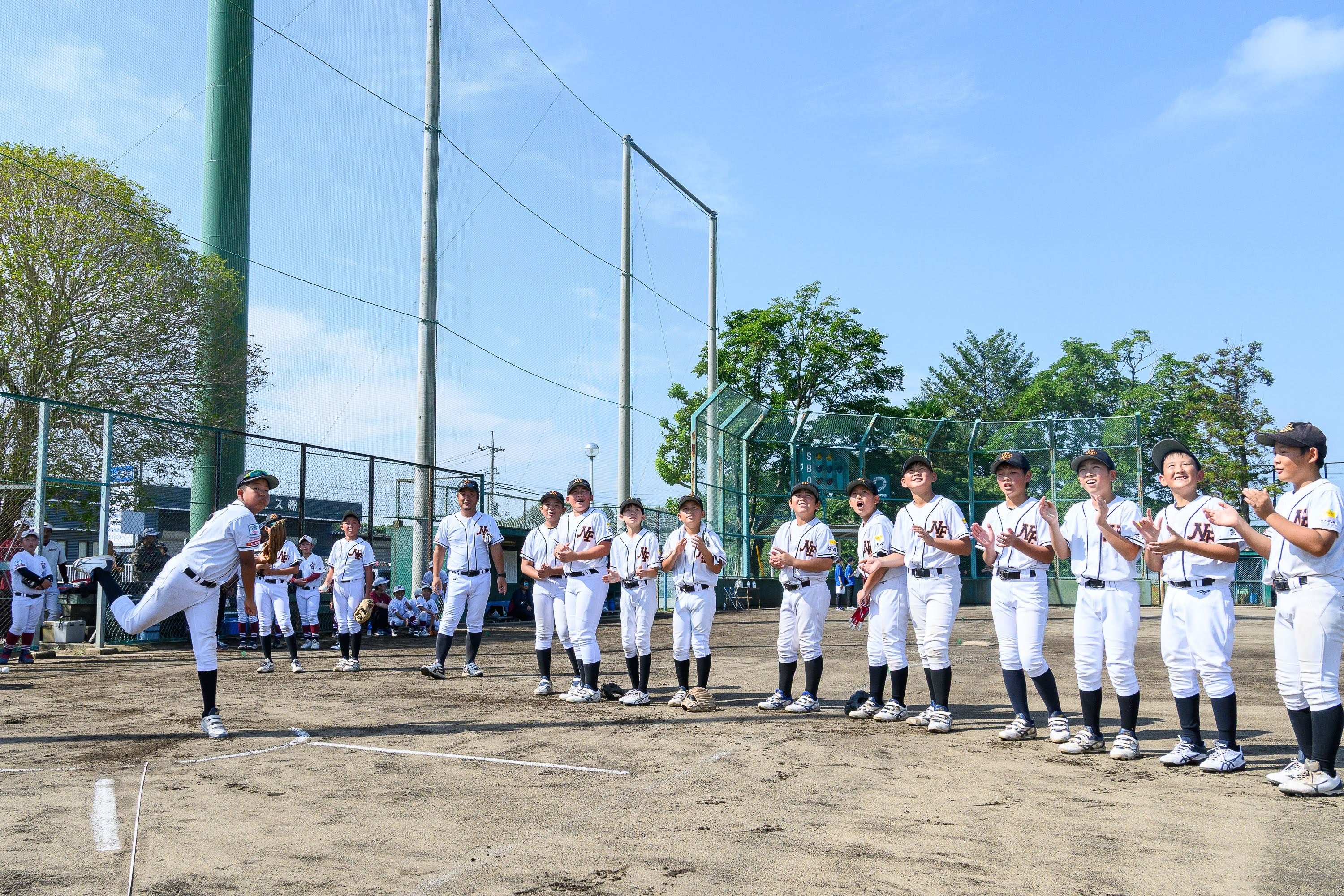 ・チーム代表選手2名および大人1名が参加するホームラン競争の実施と、参加チーム全員応援合戦