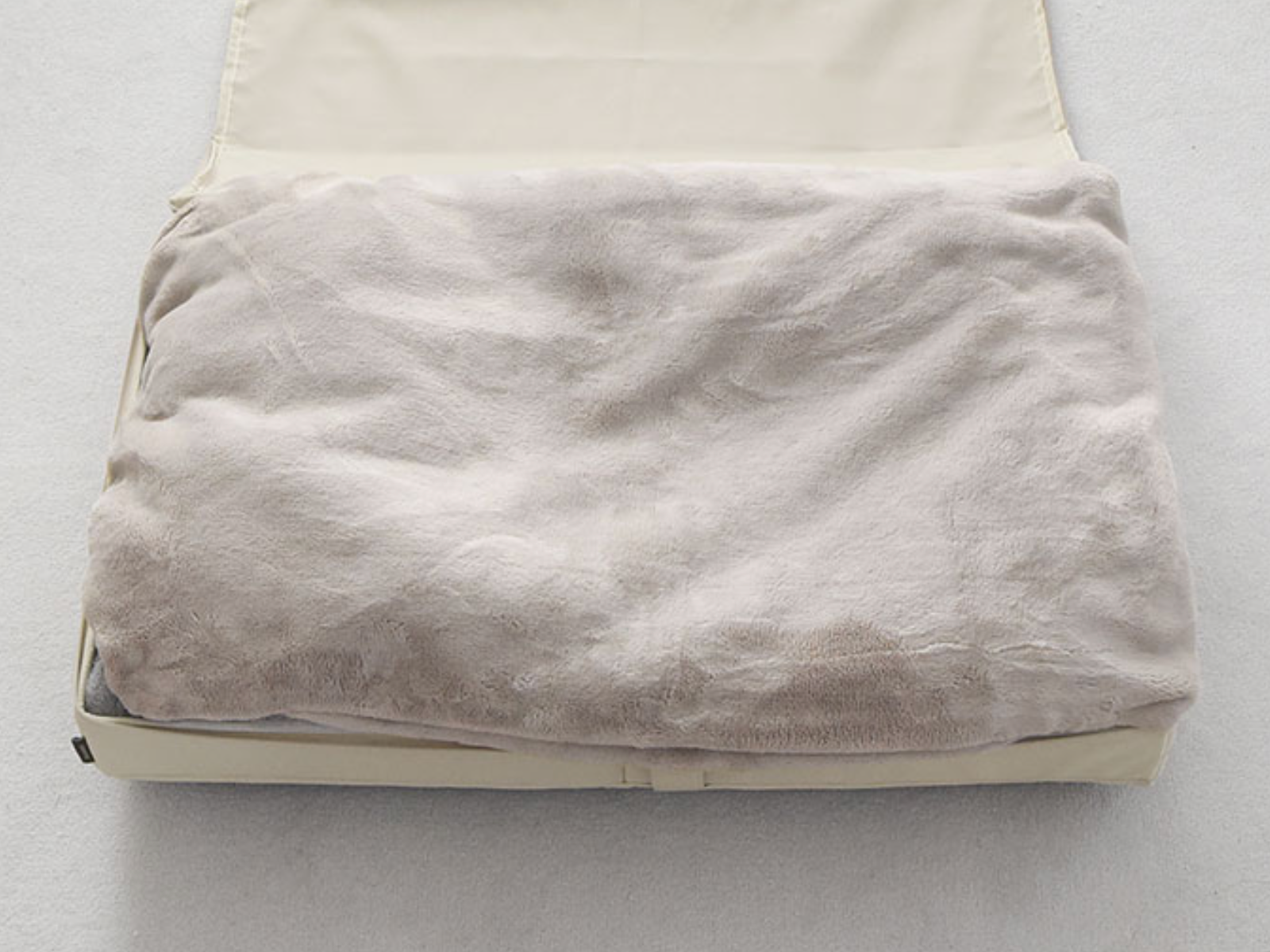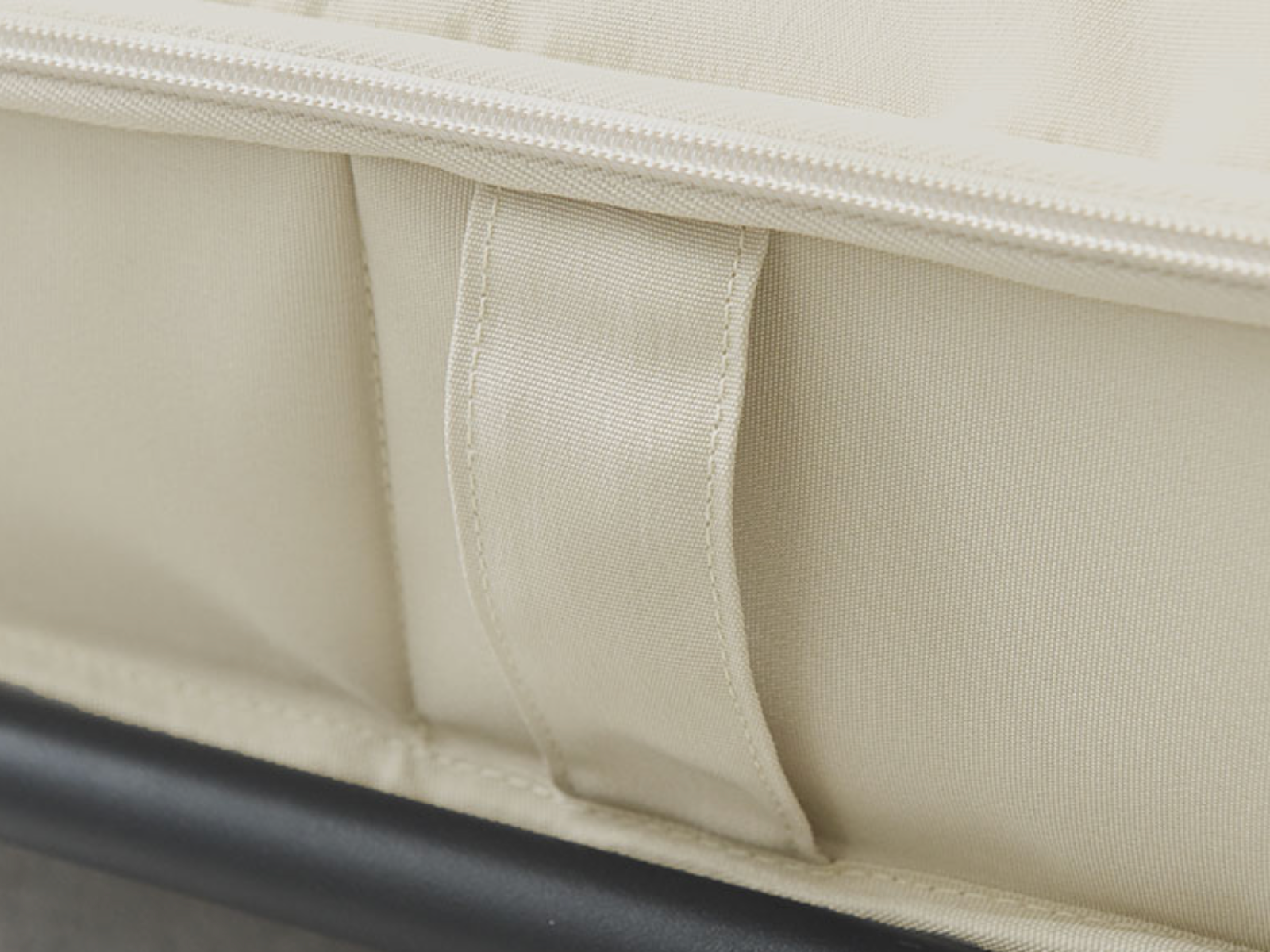 ケース部分の素材は厚手で丈夫ポリエステル100%生地。ハリ感のある素材は見映えも◎です。