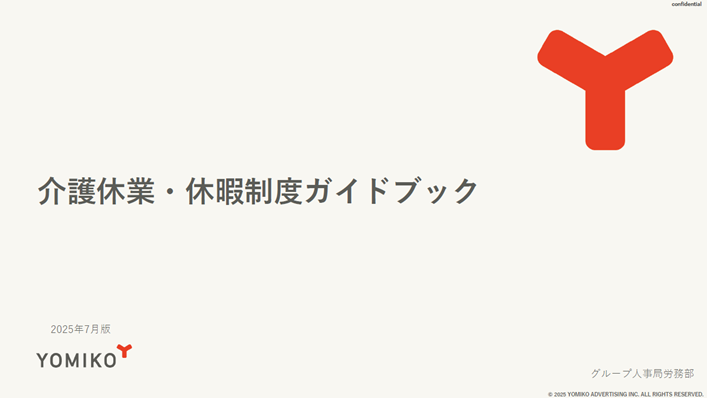 当社は今後も、YOMIKOらしいDE&Iの推進とYOMIKOが掲げるビジョン「GAME CHANGE」に繋がる『全員活躍』の土壌づくりを目指し、社員一人ひとりが安心して働き続けられるよう、介護と仕事の両立支援に向けた取り組みを強化してまいります。