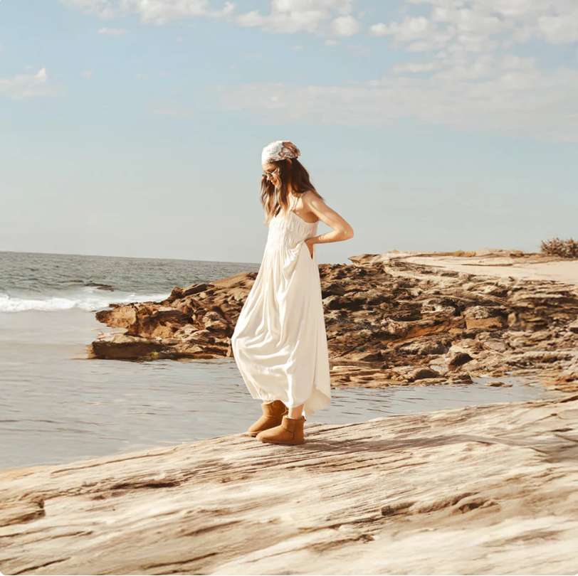 いずれのモデルも共通しているのは、オーストラリア産メリノシープスキンの柔らかさと快適さ、そしてタイムレスなデザイン。クラシックな定番はブランドの原点を示し、スエードやプラットフォームは現代的な感性を映し出し、光沢感や都会的な仕上げは海辺のリラックスと都市の洗練をつなぐ架け橋となっています。