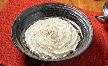 白いクリームが特徴。クリームの下はチーズ、明太子などが隠れており、混ぜて食べると美味しい。だしを加えて味の変化が楽しめる。