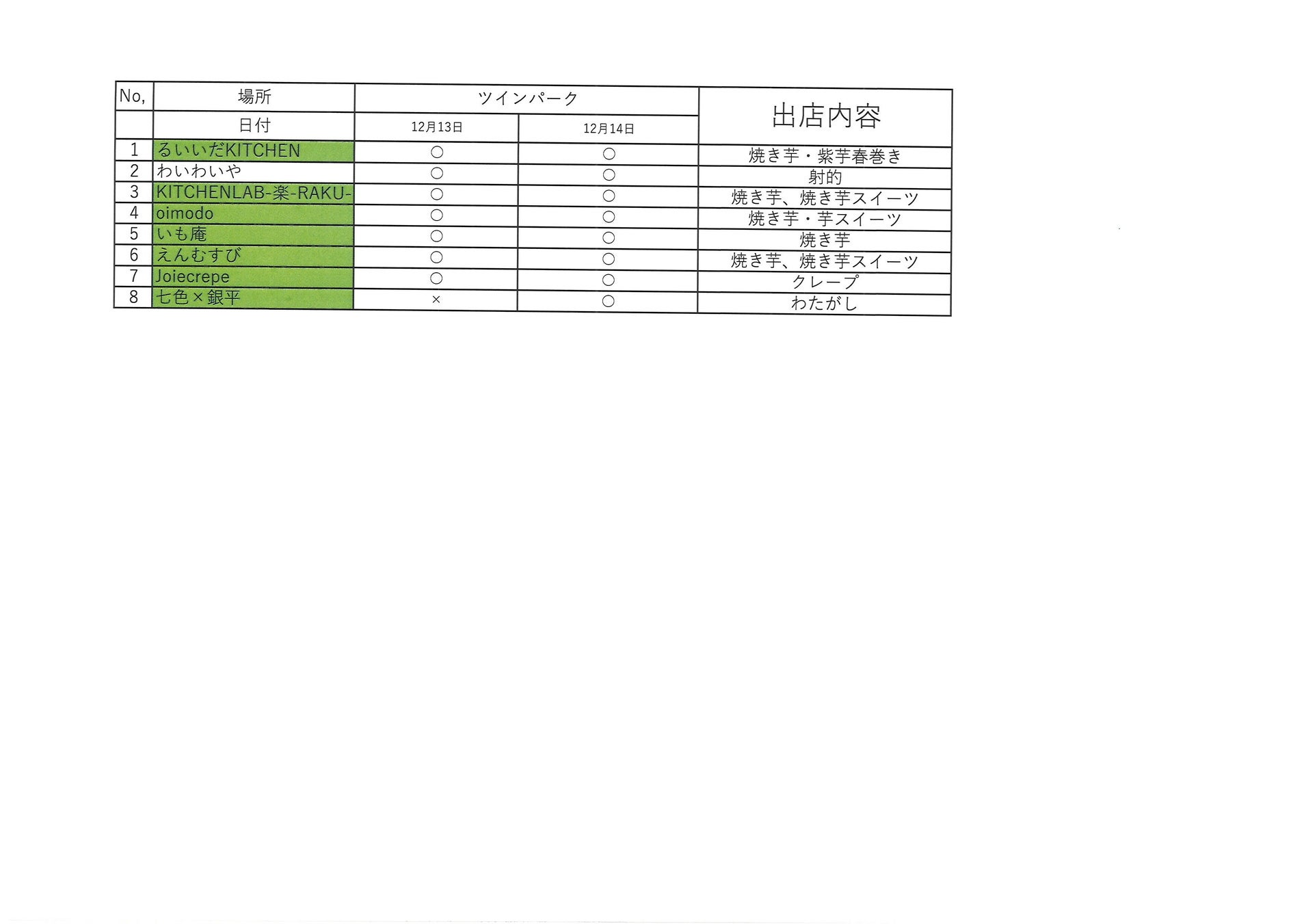出店者は以下の通り。