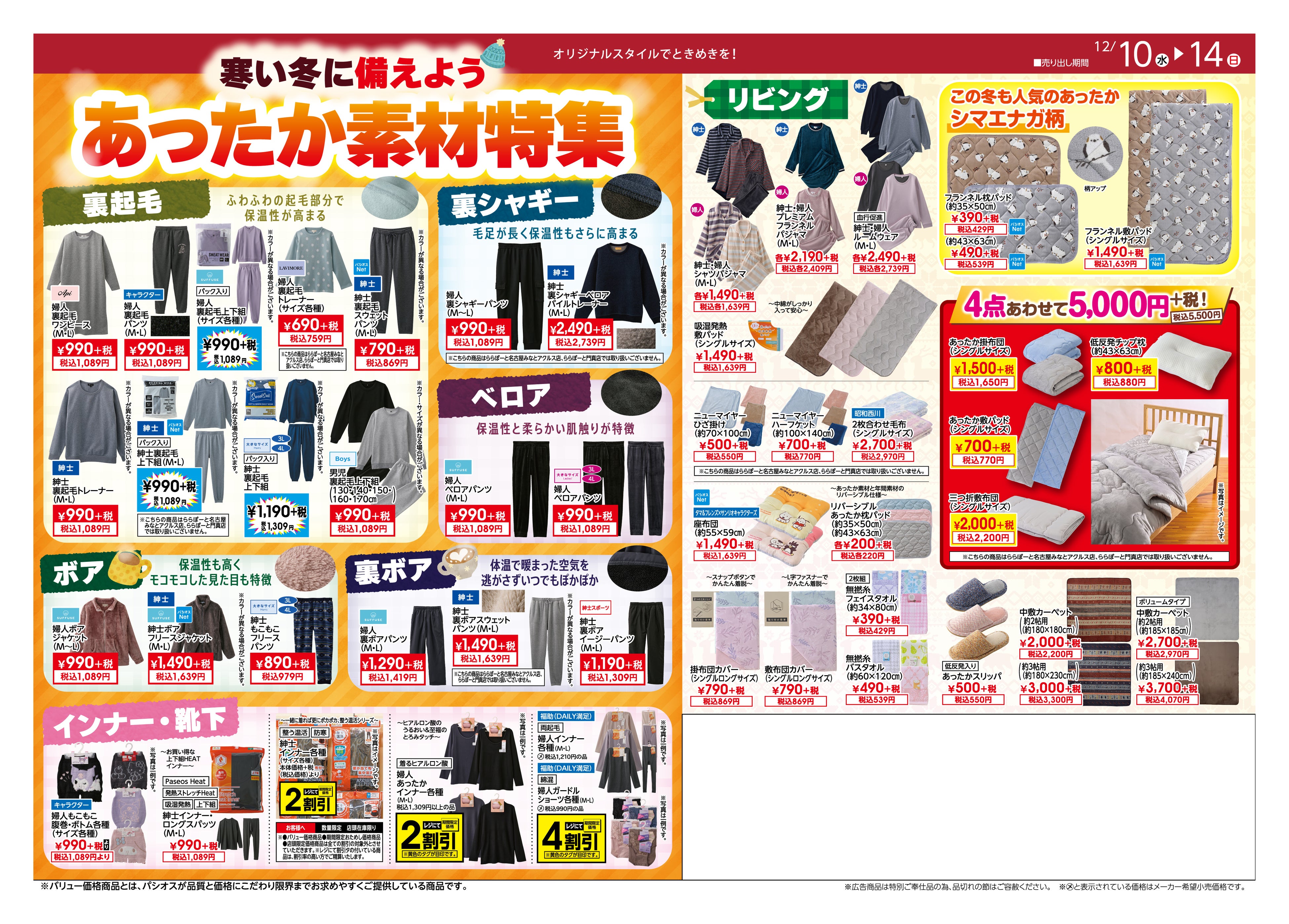 チラシ裏面では[あったか素材特集]を開催いたします。