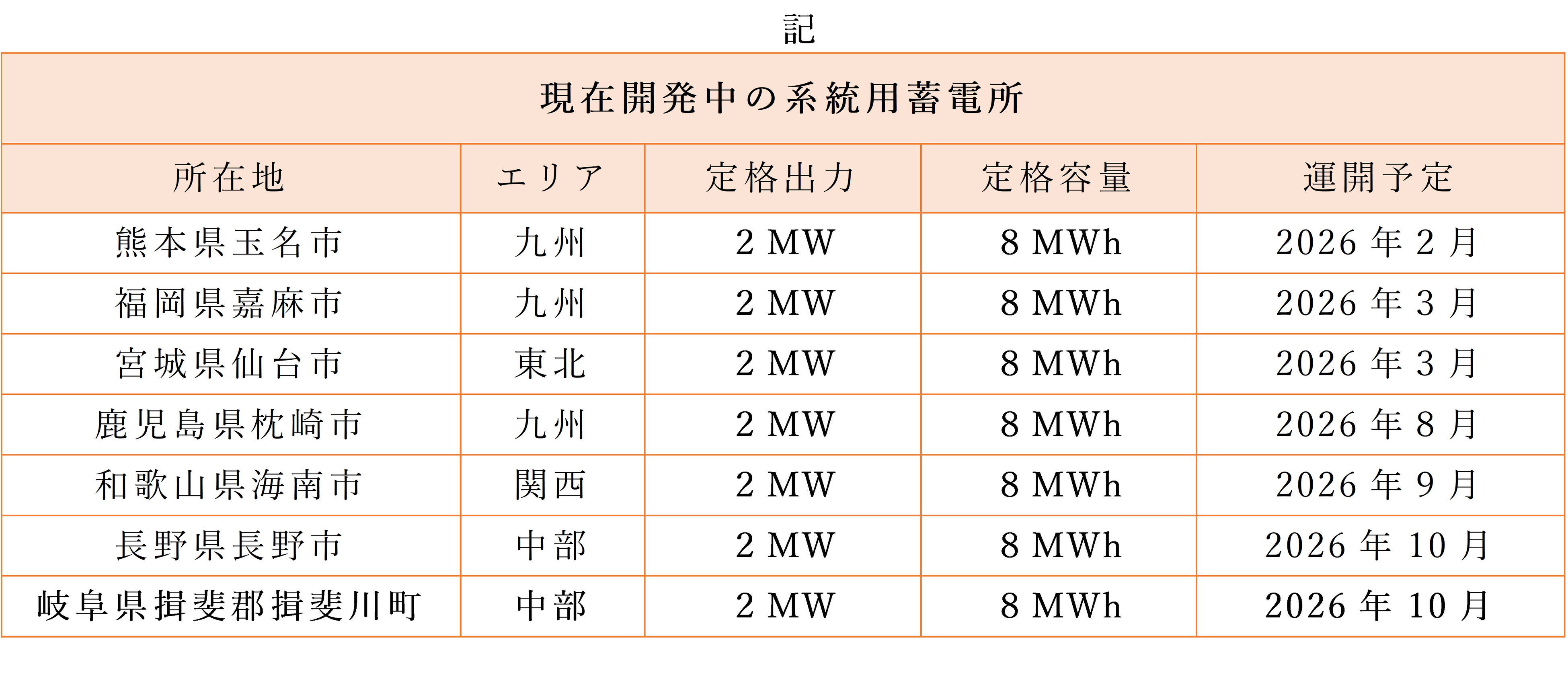 2026年末までに7か所の蓄電所を運転開始 系統用蓄電所事業の収益化を加速!