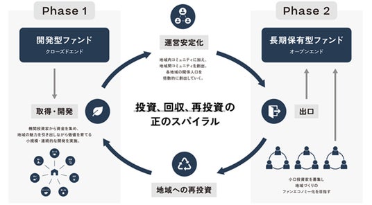 今後は瀬戸内エリアを起点に、地域特性を活かした複合的なエリア開発プロジェクトを順次展開していく予定です。また、GSFによるリスクマネー(※2)を投資の入口とし、開発された不動産が安定的に稼働した後に長期保有ファンドが引き継ぐ仕組みを構築します。開発から運営までを地域内で循環させることで、地域不動産開発における資金の入口と出口を確立し、都市と地域、資金と人材が循環する地域モデルの創出を目指します。