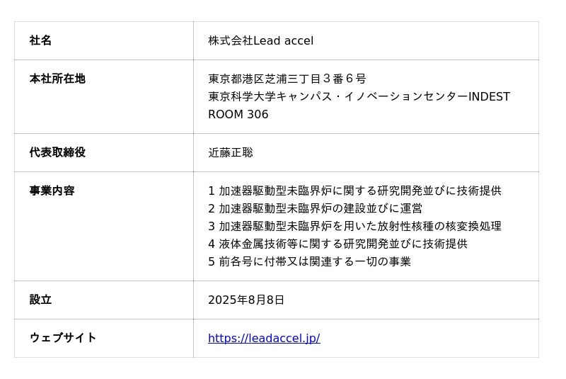 このたび、東京科学大学総合研究院ゼロカーボンエネルギー研究所准教授の近藤正聡により株式会社Lead accel(本社:東京都港区)が設立されました。当社は、東京科学大学の研究成果を活用したベンチャー企業として、同大学の「研究成果等を活用したベンチャー企業への称号の授与に関する規則」第6条に基づき、“東京科学大学認定ベンチャー(第20号)”の称号を授与されています。