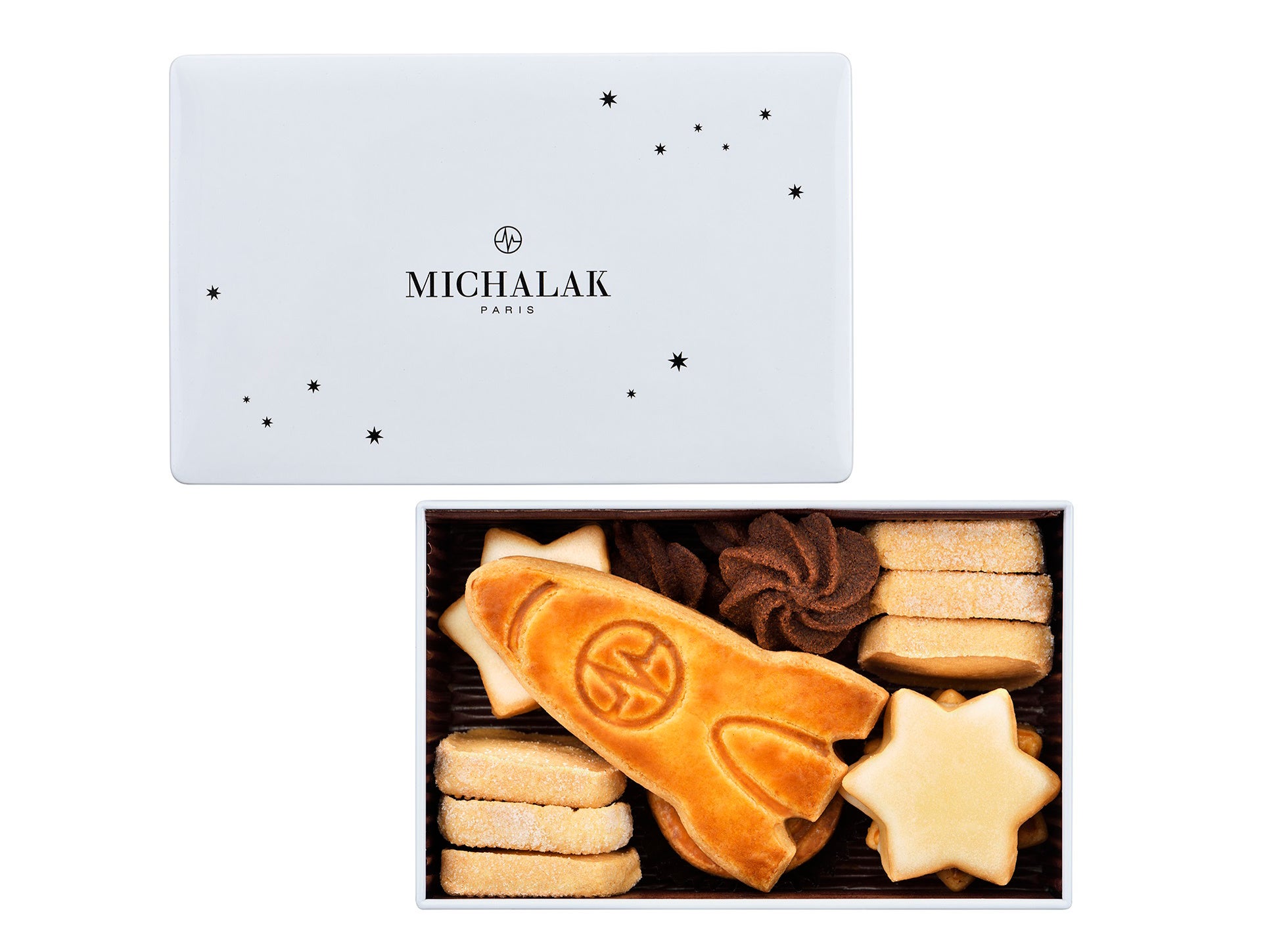 発酵バター香るロケットサブレ、チーズの塩味がやみつきになるパルメザン、柚子のアイシングがさわやかなシトロンユズなど計6種のサブレを詰め合わせました。蓋を開けた瞬間、ロケットや星型の遊び心あふれるサブレがとびだし、かわいらしい見た目とバターの上質な味わいとのギャップが魅力的です。