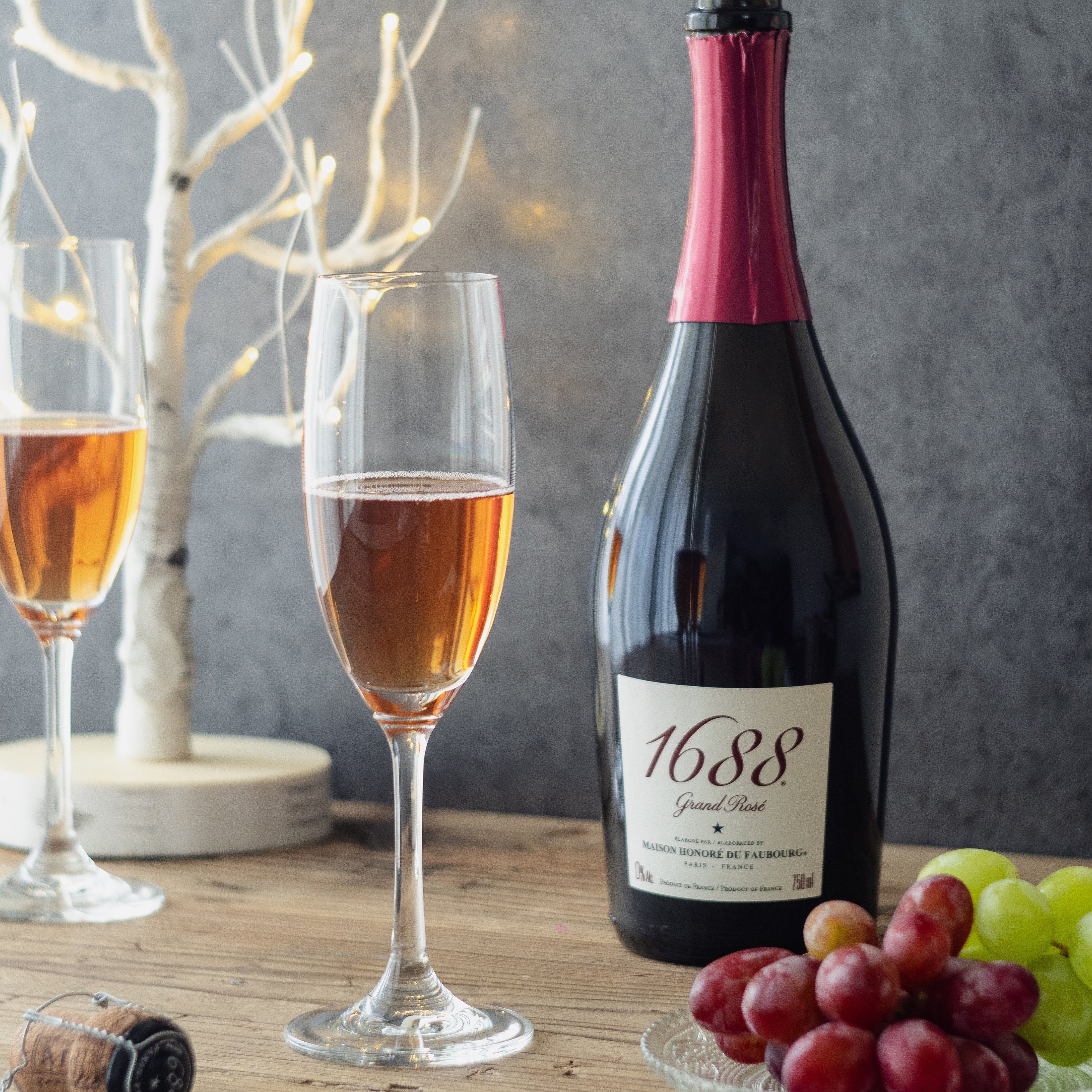 シャルドネ、ピノ・ノワール、ピノ・ムニエなどの、ワインにも使用されるぶどう品種で作られます。華やかなミュスカとほのかなアールグレイのアロマが印象的です。繊細な泡と優しい甘みは、幅広い料理やスイーツと相性抜群です。