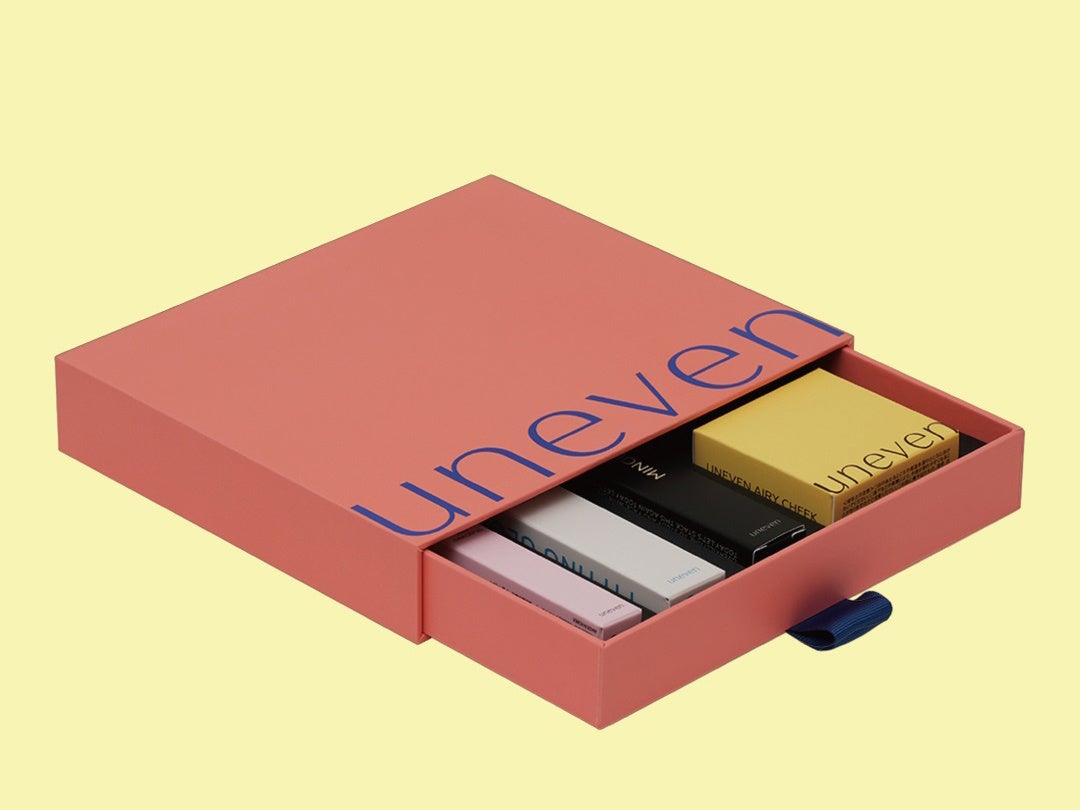 自由なバランスを楽しむコスメブランド<uneven>。新作を詰め込んだ数量限定のlimited boxの販売や、ノベルティーシール、ディレクターによるタッチアップなど、来場者限定の特典を多数用意しました。
