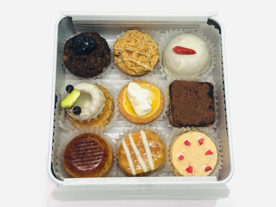 生菓子のケーキを焼き菓子にした、<TiMi>の看板商品“ベイク”。ショートケーキやモンブランなど定番ケーキをモチーフにしたクッキーを詰め合わせました。味はもちろん、見て楽しいクッキー缶です。