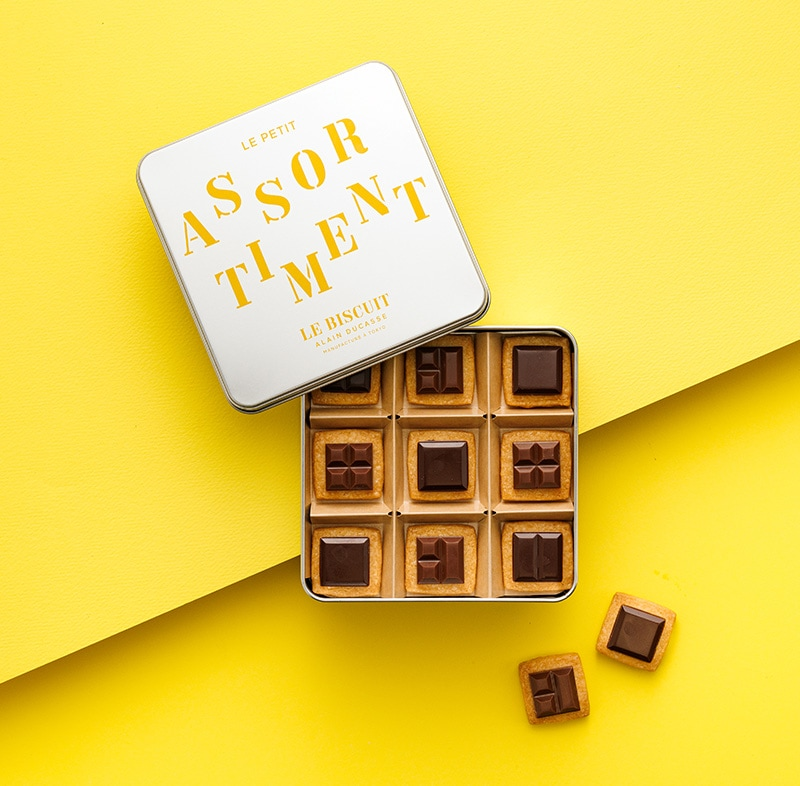 アラン・デュカス氏の思い出に残る「おばあちゃんが作ってくれたバターの風味たっぷりのビスケット」を再現したピュール・ブールと、姉妹ブランド<ル・ショコラ・アラン・デュカス>の代名詞でもあるアイコニックなショコラがコラボレーション。2つのブランドの魅力を同時に堪能できる一品です。カカオ75%ショコラノワールとカカオ45%ショコラ オ・レの2種類を詰め合わせました。