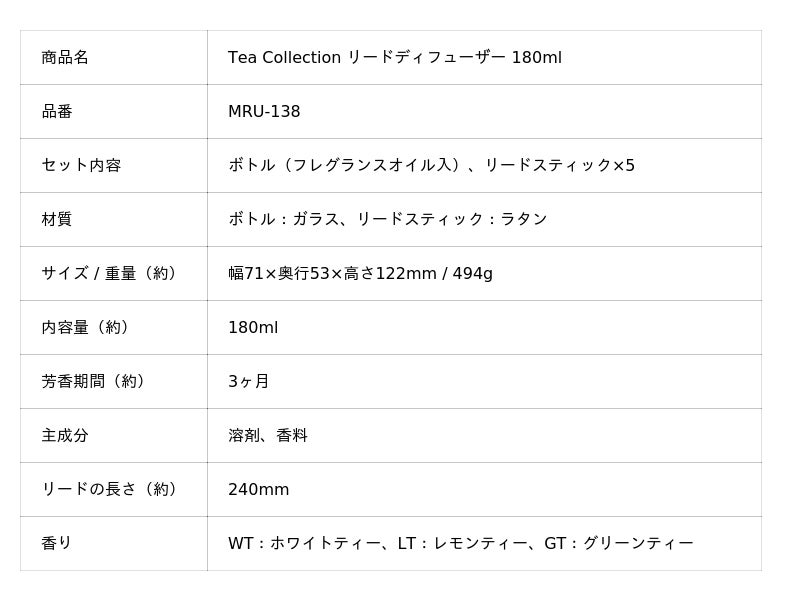 「Tea Collection リードディフューザー 180ml」 MRU-138