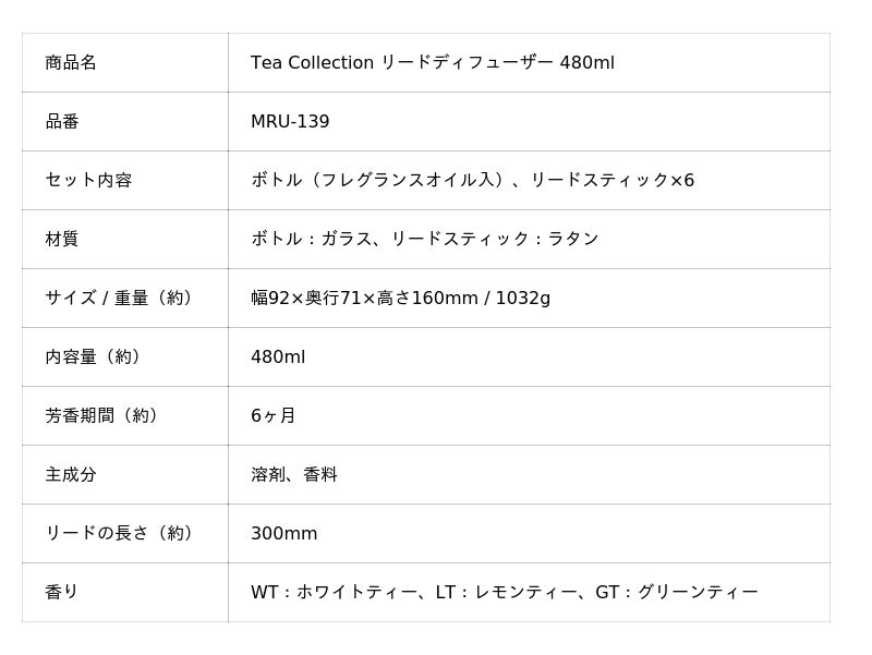 「Tea Collection リードディフューザー 480ml」 MRU-139