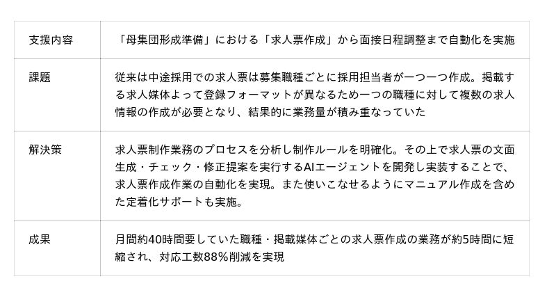 【採用実務の事例】中途採用の求人票作成工程にゼロ化を導入 ~工数88%削減を実現~