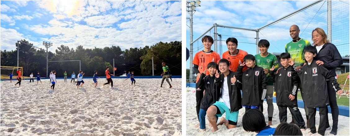 この時期は砂が冷えてくるため、プロ選手たちは専用ソックスを着用して臨むそうですが、子どもたちは寒さをものともせず、裸足で元気いっぱいに走り回っていました。