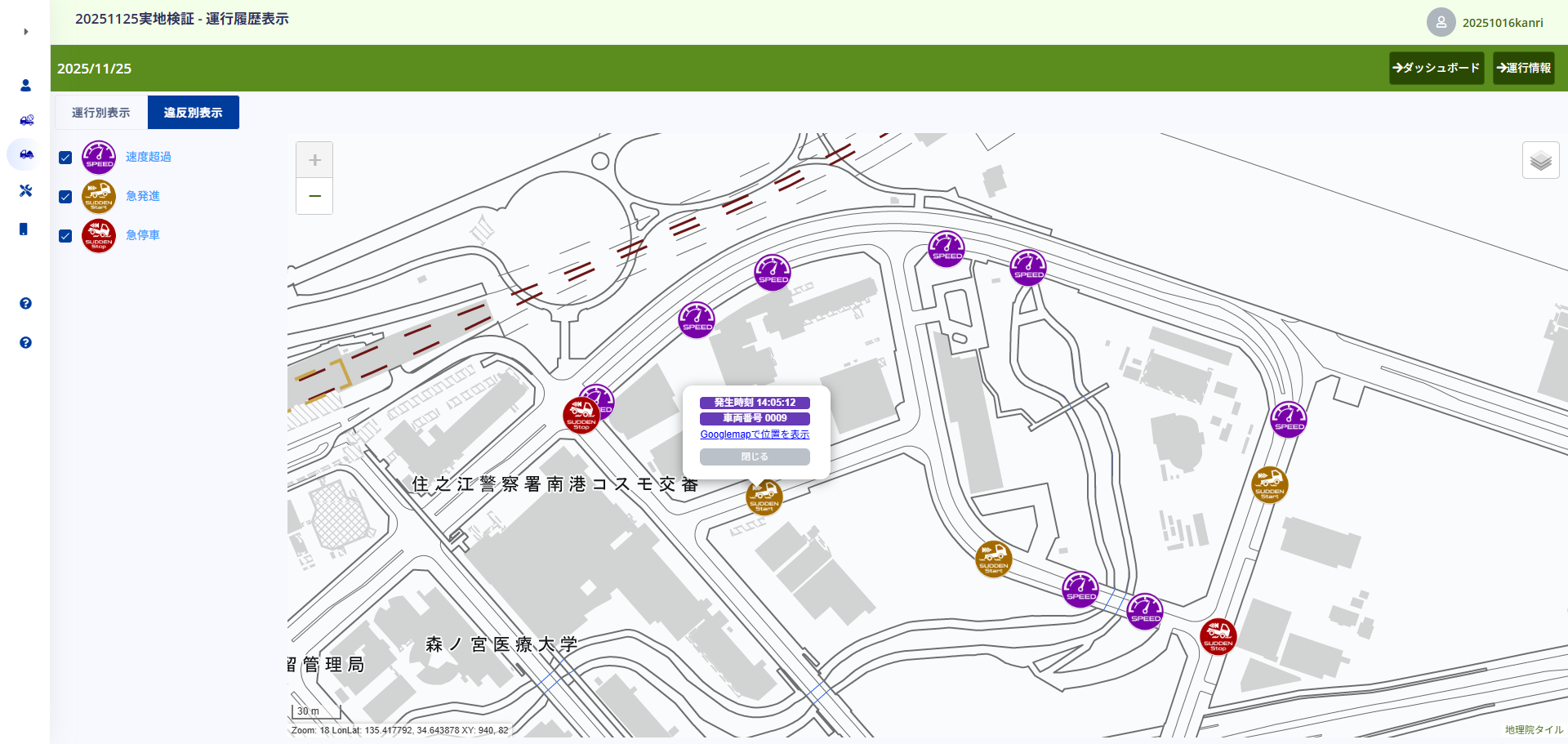 - 稼働率、走行速度、待機時間などの詳細な稼働状況を可視化