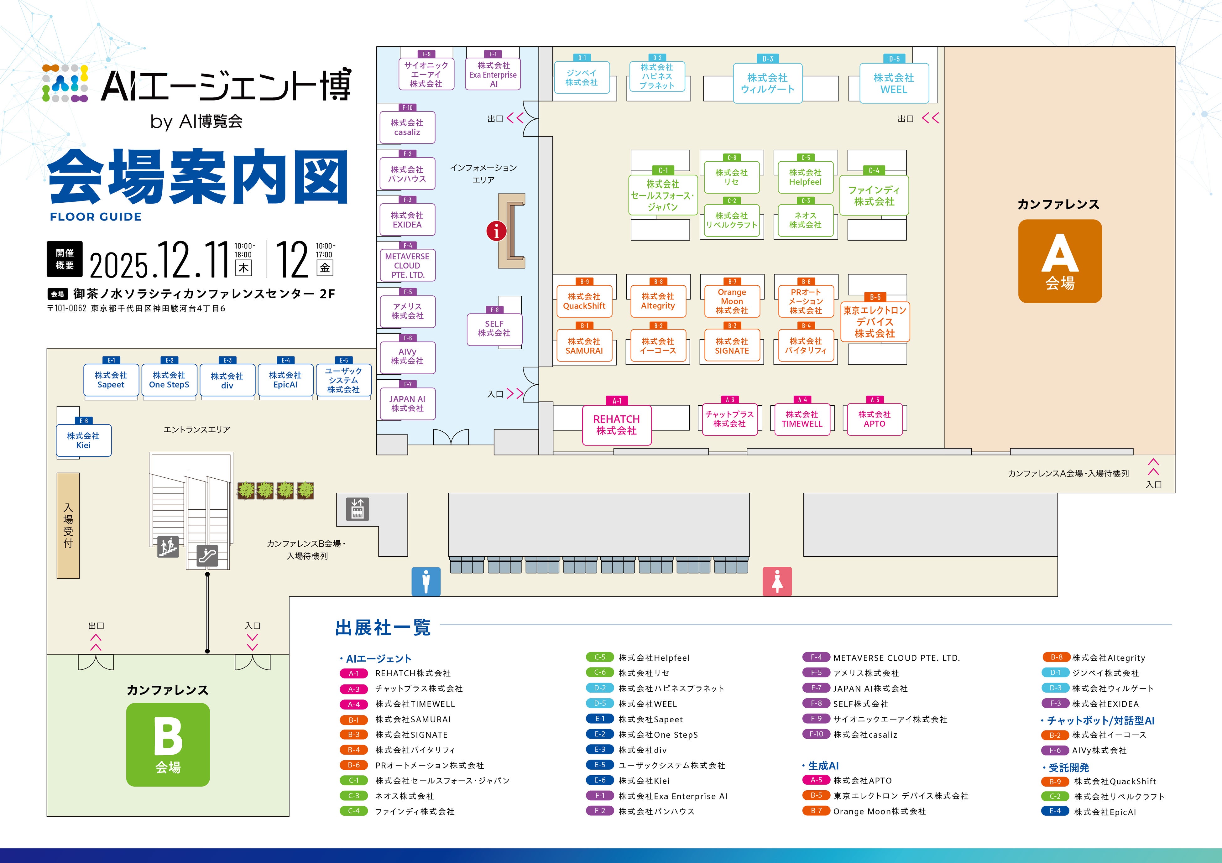 【明日開催】AIエージェント博 by AI博覧会 フロアマップを一挙公開!Notion、日清食品など登壇者全34名が集結