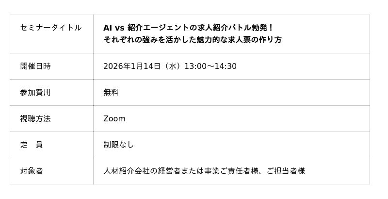 「AI vs 紹介エージェントの求人紹介バトル勃発!それぞれの強みを活かした魅力的な求人票の作り方」の再配信が決定!
