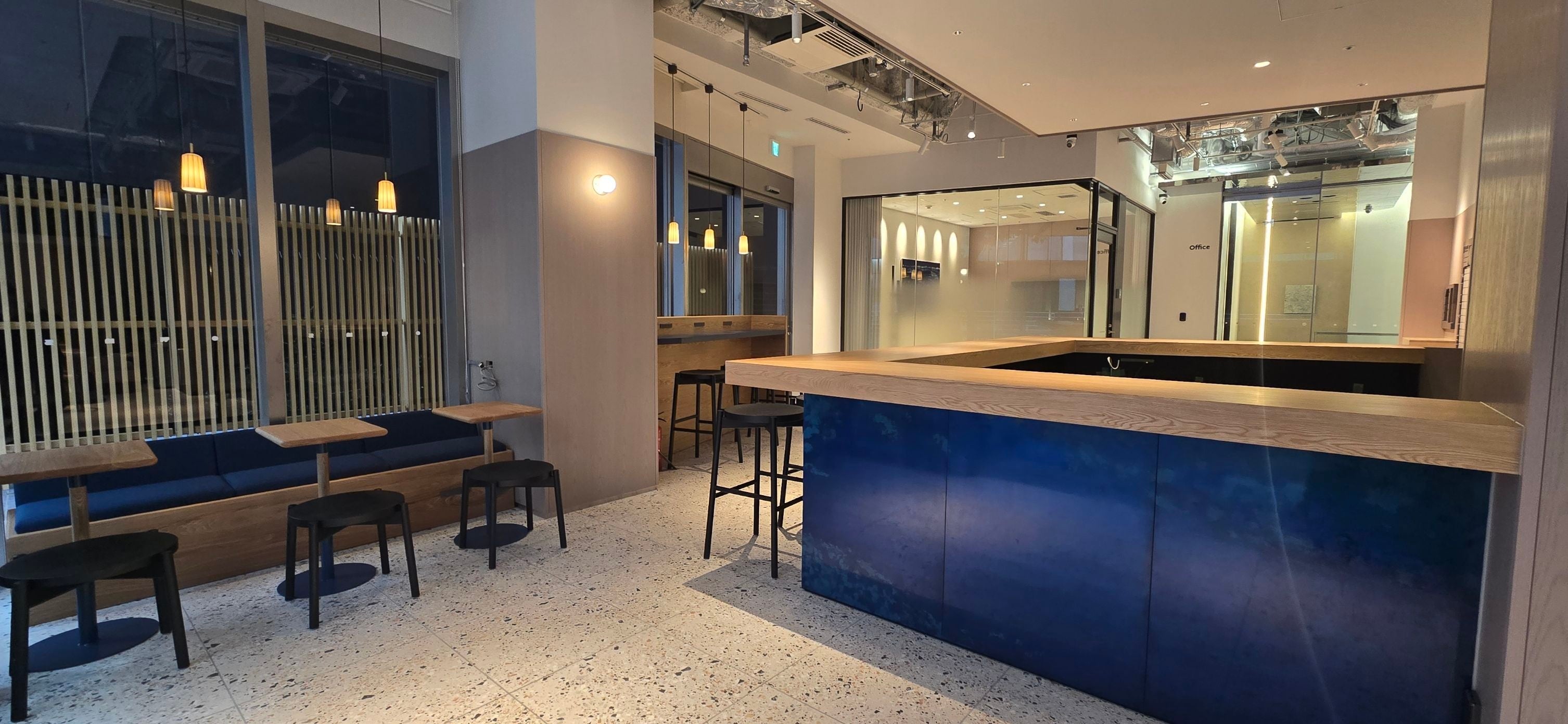 「it COFFEE 八丁堀店」全32席の空間に、多様なニーズに応える席をご用意しています。19席にはコンセントを完備し、作業に集中したい方にも最適です。このほか、コーヒーと静かに向き合えるカウンター席や、落ち着いてリラックスできるソファー席もご用意。家具は北海道産タモの天然木を使用し、ナチュラルで落ち着いた空間で、オフィスワーカーはもちろん、近隣の方々のコーヒータイムに適した、ゆったりとした席配置にしています。