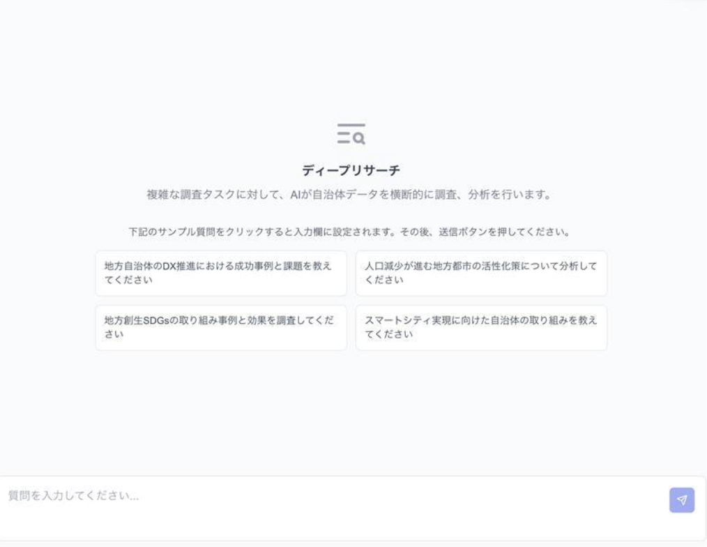 新機能:自治体情報を一度に検索・分析できる「自治体ドキュメントリサーチ機能」「ディープリサーチ機能」をリリースいたしました。