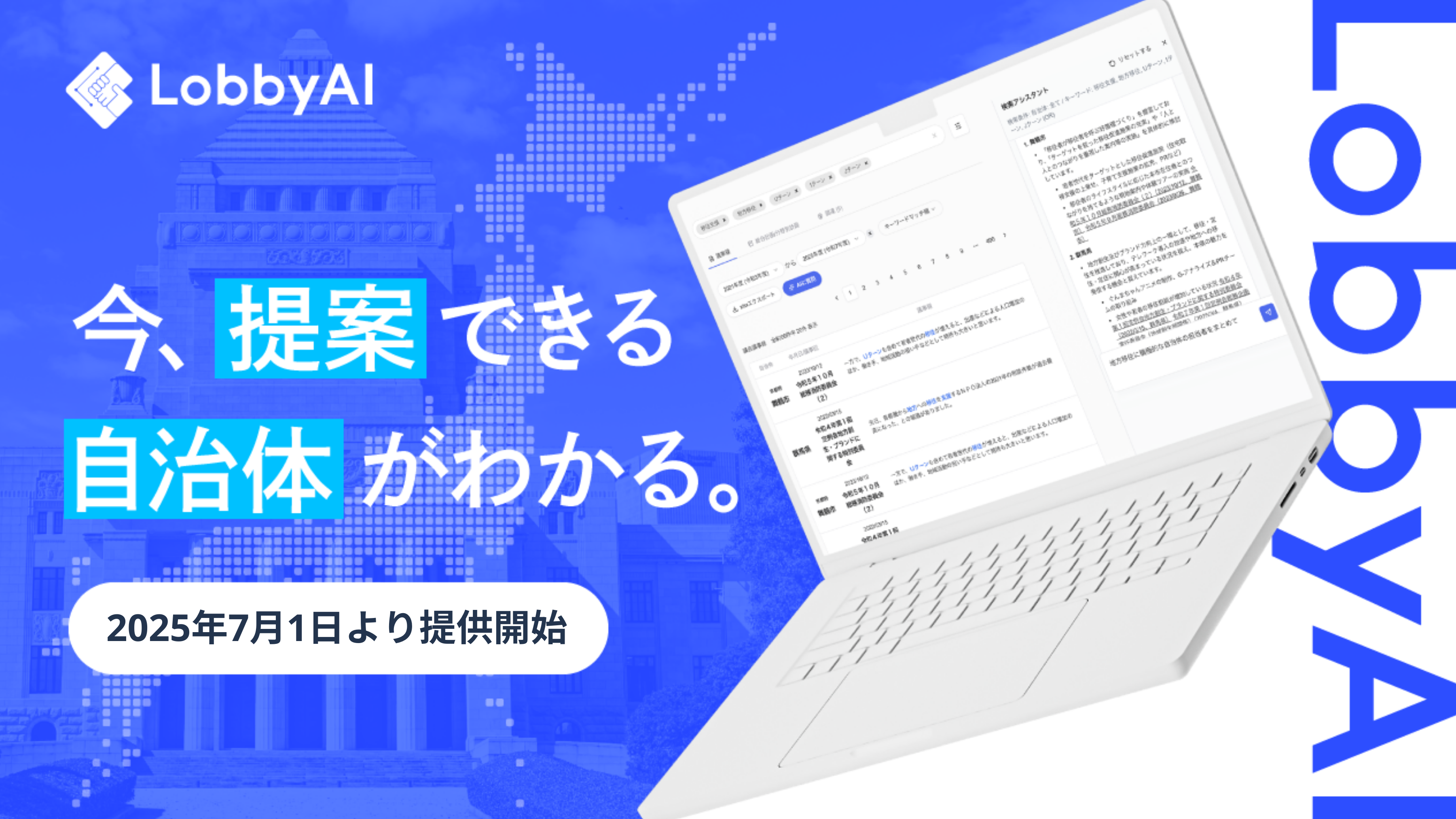 LobbyAIは、行政・政治のデータをテクノロジーで構造化し、企業と行政の共創を促進するGovTechスタートアップです。