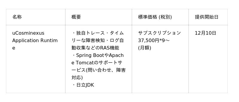 uCosminexus Application Runtimehttps://www.hitachi.co.jp/Prod/comp/soft1/cosminexus/ucar/?ni=251210