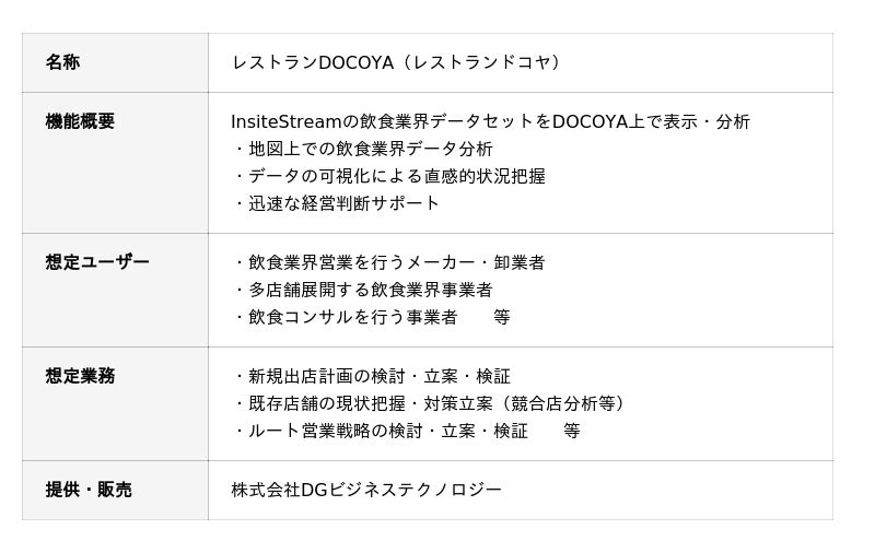 DGBT、アドソル日進のSaaS型GISソリューションを活用した飲食業界向け商圏分析ツール「レストランDOCOYA」の提供を開始