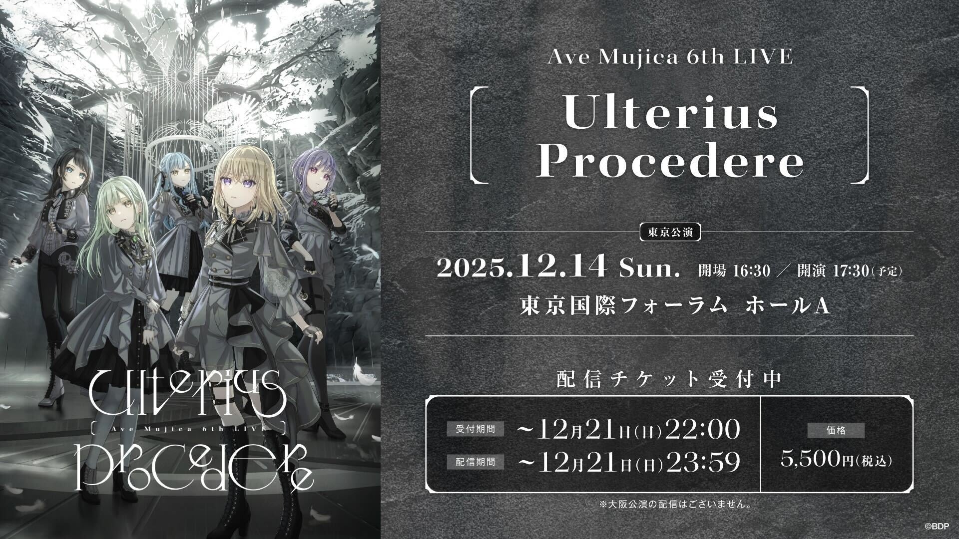 2025年12月14日(日)に東京国際フォーラム ホールA、2026年1月15日(木)にグランキューブ大阪 メインホールにて、Ave Mujica 6th LIVE「Ulterius Procedere」を開催します。現在、会場チケットは完売、東京公演の配信チケットが受付中です。