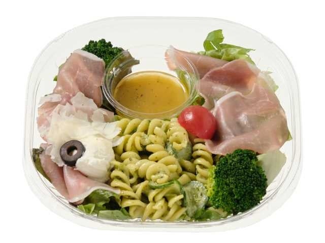 生ハムや2種類のチーズに相性の良いバジルマカロニを組み合わせた彩り鮮やかなサラダです。