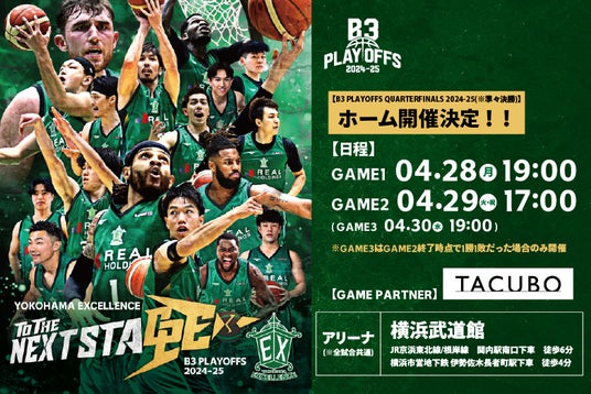 ※横浜エクセレンスが「B3 PLAYOFFS SEMIFINALS 2024-25(※準決勝)」で2勝し、なおかつ対戦クラブよりも「B3リーグ レギュラーシーズン 2024-25」で上位となる場合に「B3 PLAYOFFS FINALS 2024-25(※決勝)」ホーム開催