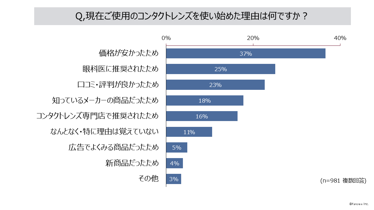 3.現在使用中のコンタクトレンズを使い始めた理由は「価格が安かったため」37%
