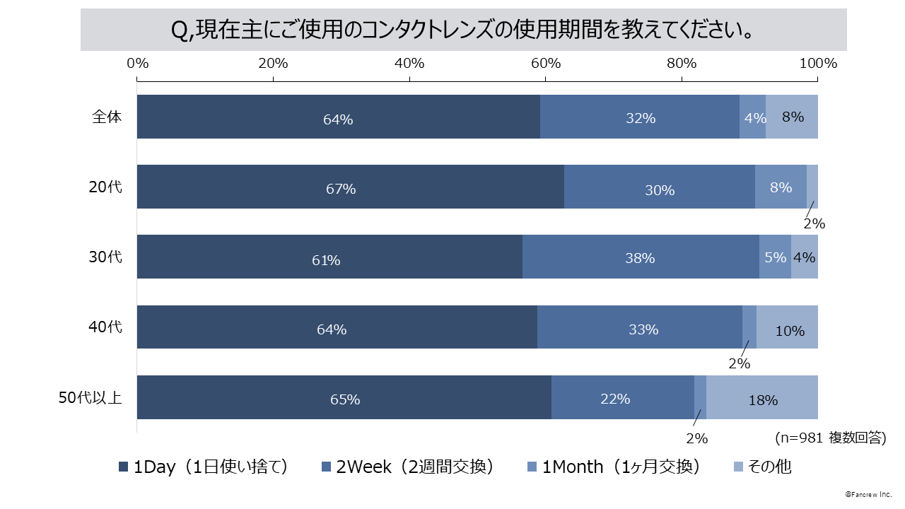 2. 主に使用しているコンタクトレンズの使用期間は「1DAY(1日使い捨て)」64%