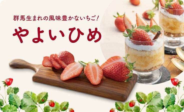 やよいひめ2005年に品種登録された群馬県生まれのいちごです。粒が大きく、少しオレンジがかった明るめの赤色が特徴。甘味が強くてまろやかな酸味があるいちごです。