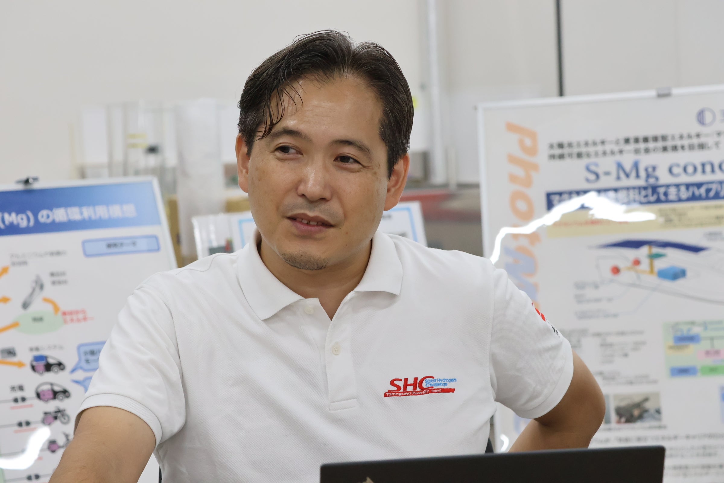 「“ラストワンマイルモビリティ“とも呼ばれるこの車両は、省エネルギーや渋滞緩和など、小型であることを活かした高い機動力が特徴です。実際の運用を想定し、車載太陽電池に加え、据置型のエネルギーミックス型充電スタンドを併用してバッテリーを交換式にしています。走行時間と充電時間ができるだけ同じになるように設計しており、一般の電気自動車のように、充電のために長時間停車する必要がないことが大きなメリットです。将来は、地球上に豊富にある海水からマグネシウムを製錬し、資源循環型エネルギーとして活用したいと考えています。再生可能エネルギーである太陽電池の利用によってカーボンニュートラルを実現するだけでなく、サーキュラーエコノミー(循環型経済)にも貢献する、エネルギーの“地産地消”によって持続可能なモビリティになると期待しています」