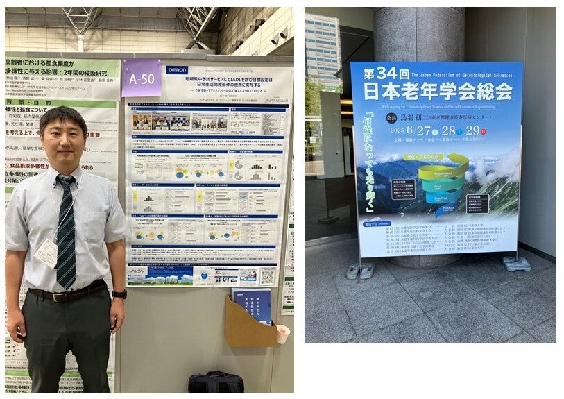 オムロンは、長期ビジョンSF2030の中で取り組むべき社会的課題のひとつに「健康寿命の延伸」をあげています。2018年より高齢者の自立を目的とする自立支援事業に取り組み、大分県、大阪府、石川県小松市をはじめとする自治体や地域包括支援センターの支援をする中で、様々な効果がみえてきました。このたび、データソリューション事業本部 自立支援事業部の宮川健が介護予防ケアマネジメントを支援するICT(ハレクルWith®)の実証成果について、第67 回日本老年社会科学会大会にて発表いたしました。これまでは紙帳票で情報が蓄積されていたため、容易に確認できなかった短期集中予防サービス*における集団データでの目標の内容と、サービスにおける成果の連動性を分析し、アセスメントを通じた目標設定がもたらす効果を実証しています。