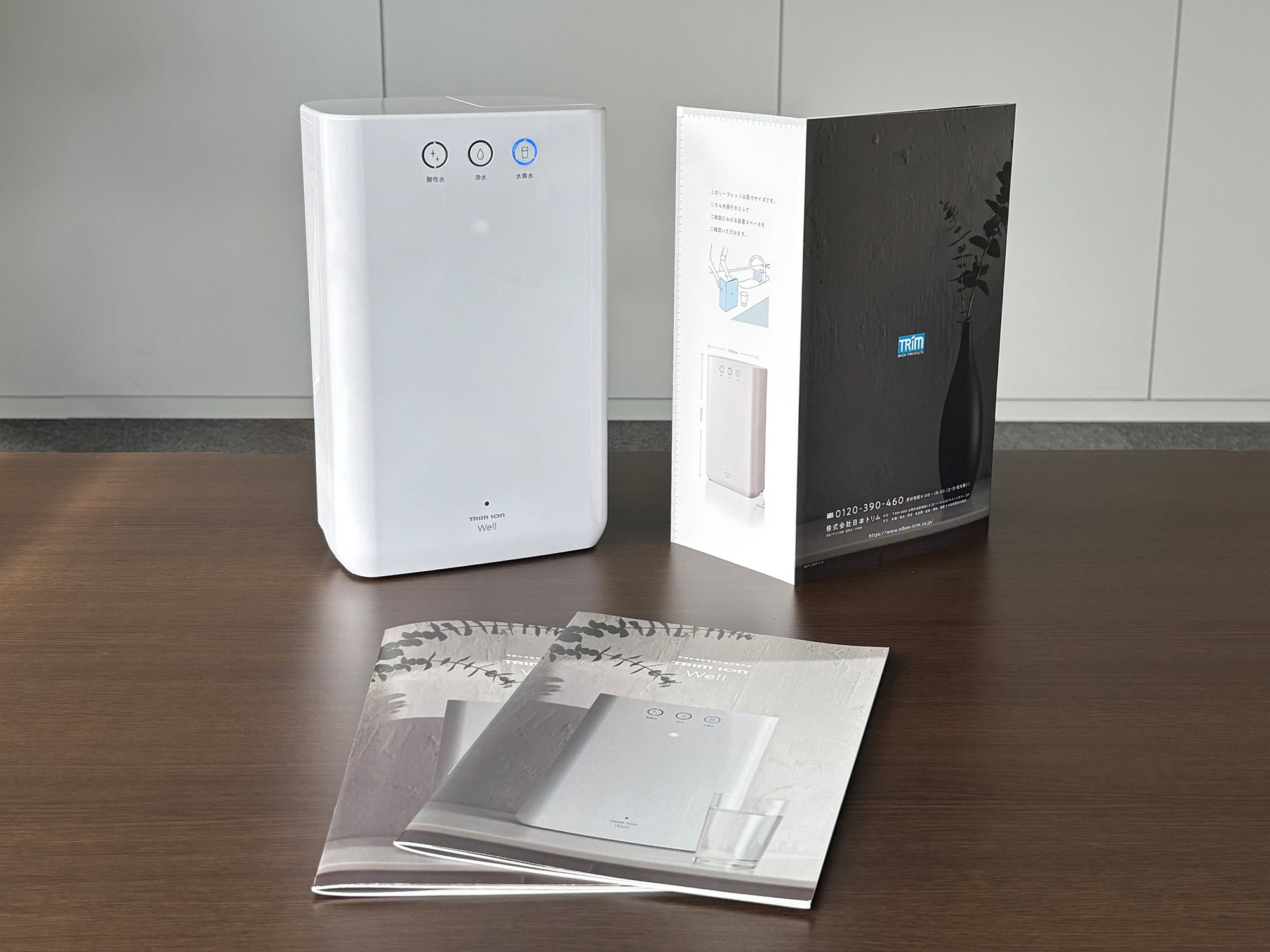 また、オンライン限定商品ということからお客様は実物を見ることができません。そのため安心して検討いただけるよう、パンフレットは原寸大で制作し、紙質や写真にもこだわり、「置き場所や整水器のある生活をイメージしやすい」工夫を施しています。