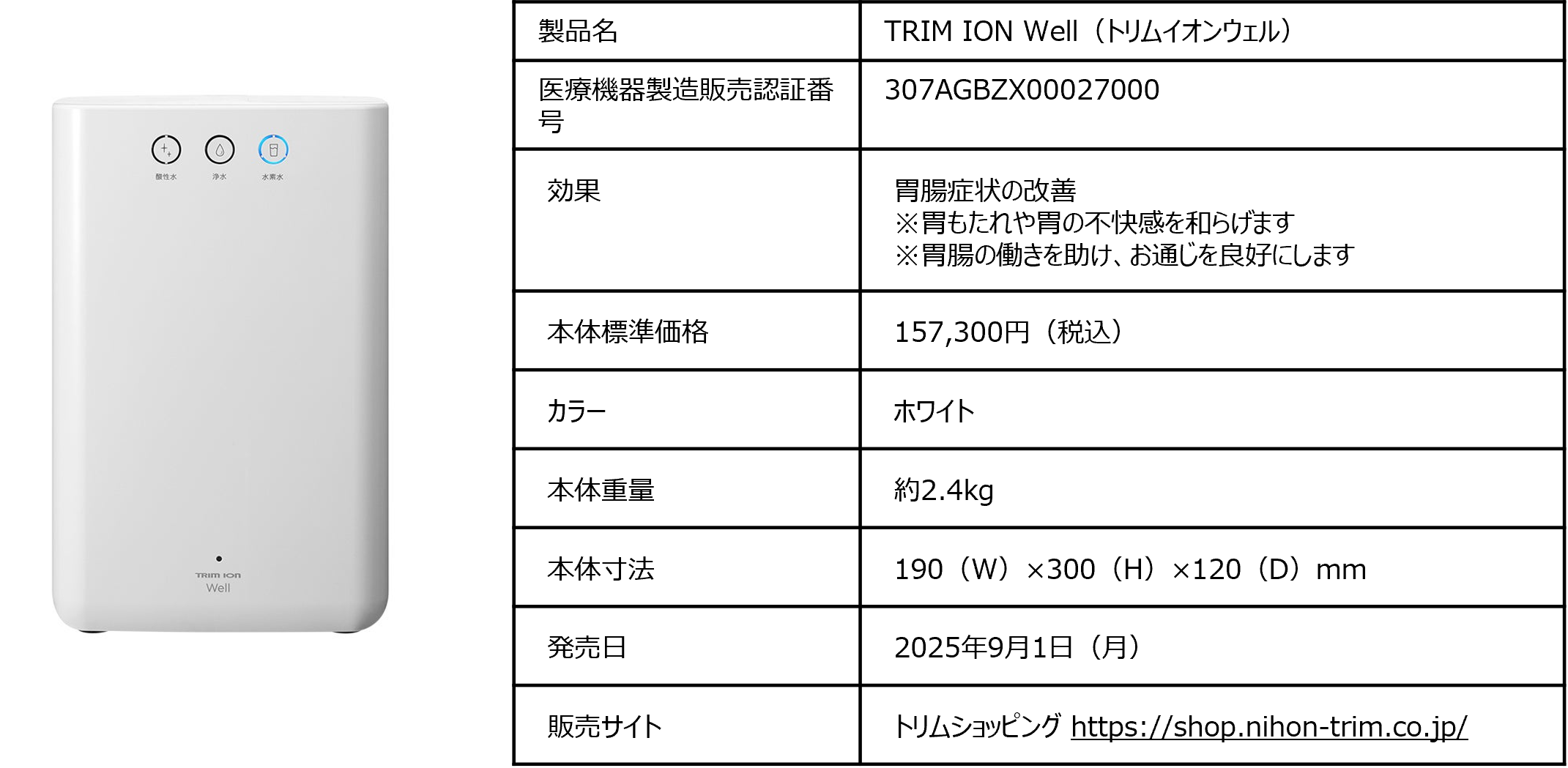 日本トリムが、今年9月から発売を開始したオンライン限定商品が、電解水素水整水器「TRIM ION Well(トリムイオンウェル)」です。
