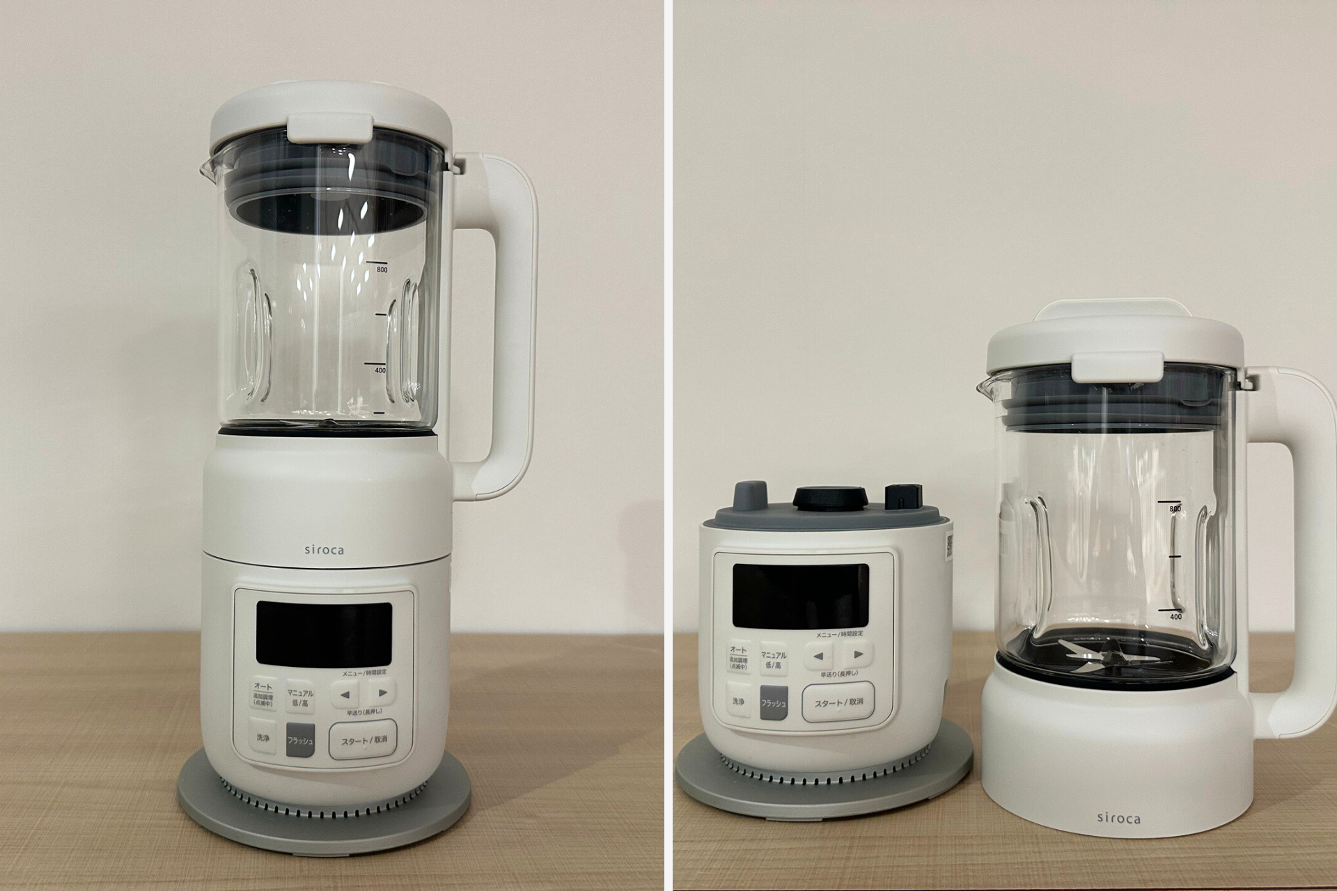 シロカのヒーター機能付きブレンダー「おうちシェフ BLENDER」は、パワフルな粉砕力で、野菜の皮や葉まで余すことなく使った熱々のスープや、乾燥大豆と水だけで作る「まるごと豆乳」、冷凍フルーツを使ったフローズンスムージーなど、素材の栄養をまるごと摂取できる多彩なメニューを手軽に作ることができるブレンダーです。具材を入れるだけの手軽さで、スープやスムージーを毎日の食事に無理なく取り入れて、不足しがちな栄養素を手軽に摂取できます。