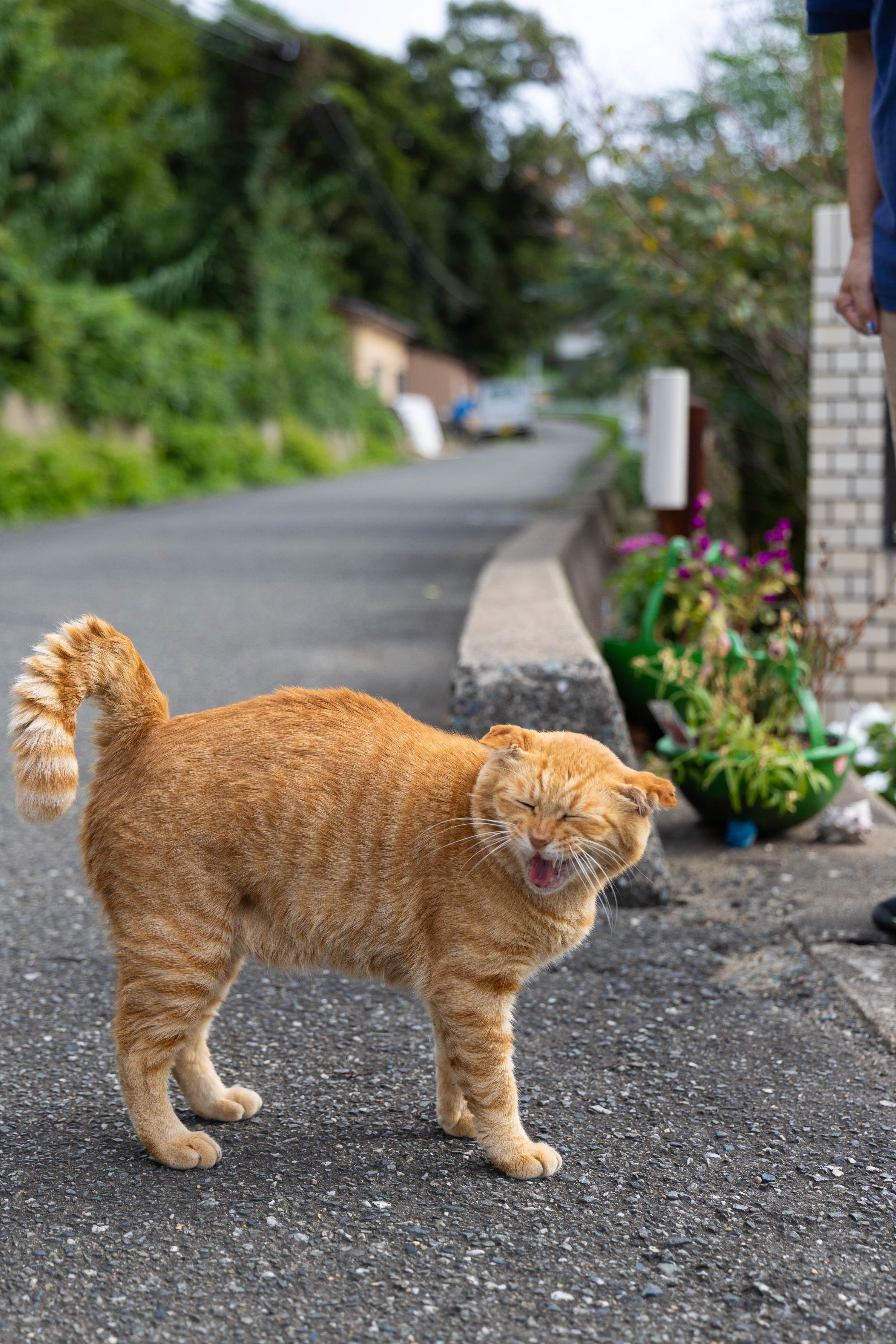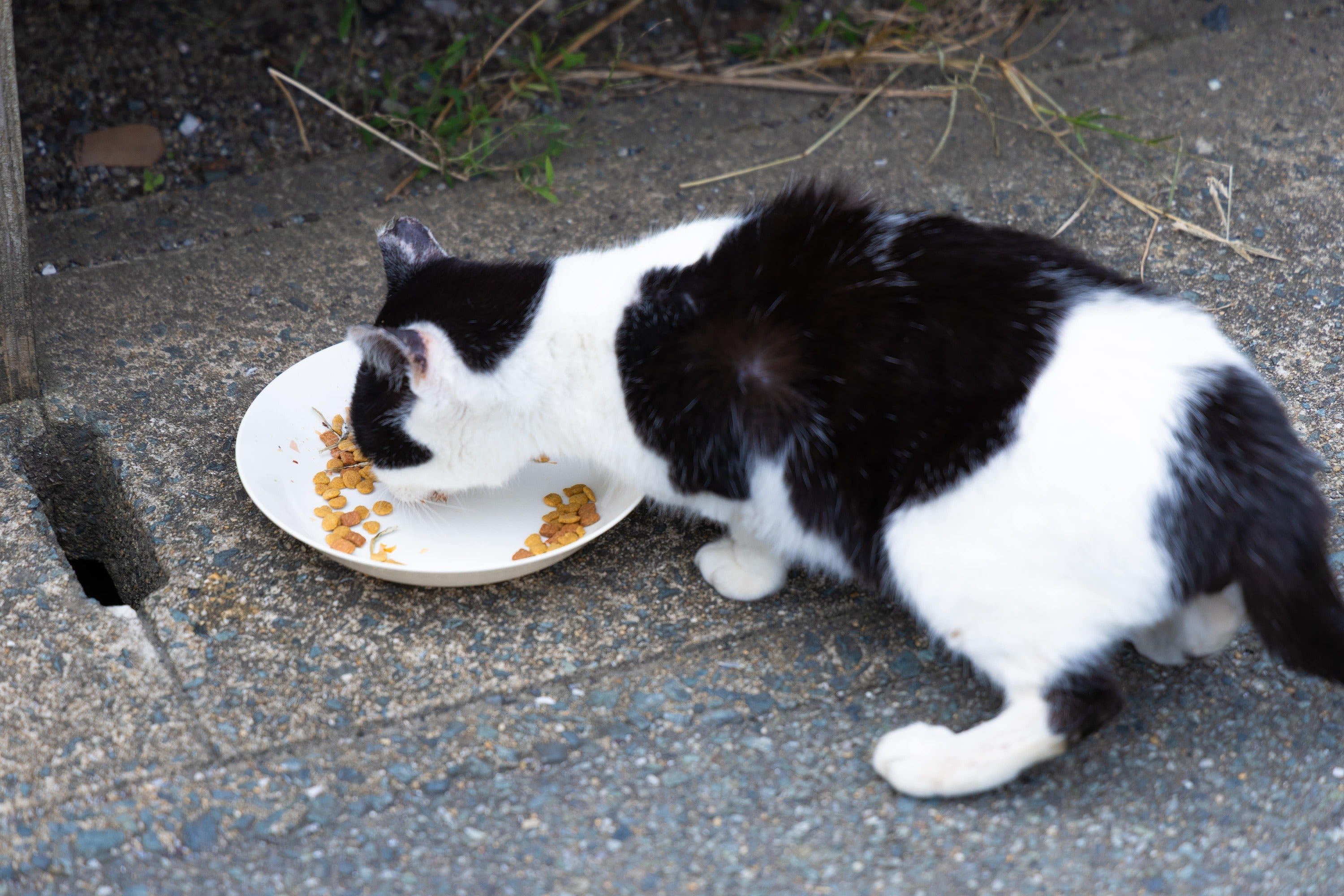 「観光で訪れる方が多く、猫と仲良く過ごしているのは微笑ましいのですが、おやつの与えすぎは気になります。特にウェット系のおやつは高カロリーで栄養が偏りやすい。少量あげているつもりでも、不特定多数の方が次々に与えると、糖尿病のリスクにつながります。なので、もし食べ物をあげるなら、総合栄養食のドライフードを少量、専用のお皿にとお願いしています。あと道端での手渡しは、猫が道路の真ん中で待って、事故につながる恐れもあるので、控えてもらえると、猫たちも安心できますかね。」