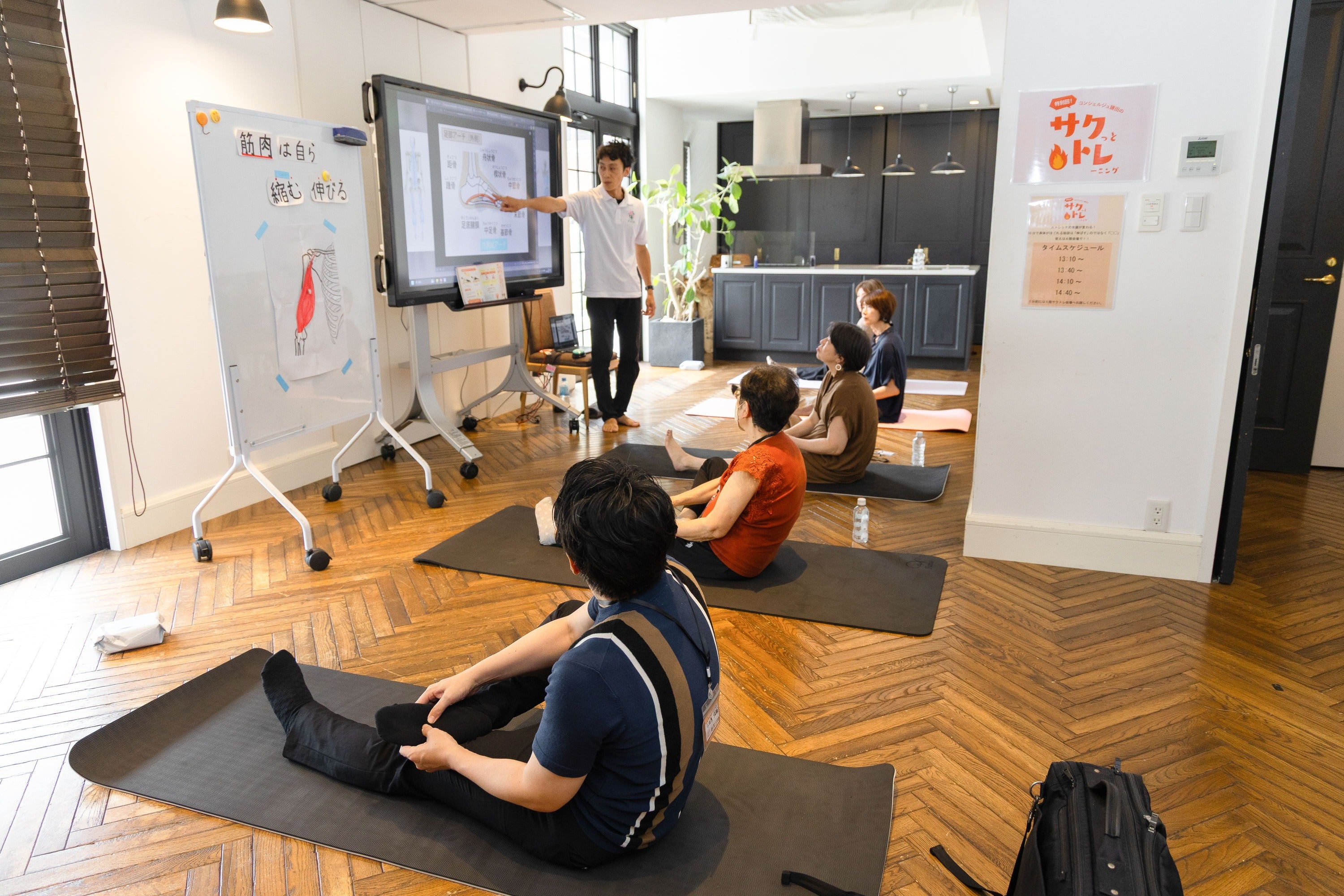 会報誌『さくらもち』で毎号好評を博している「サクトレ(サクっとトレーニング)」体験で「コンシェルジュ鎌田さんに、これまでの常識をくつがえされた!」と驚くお客様。