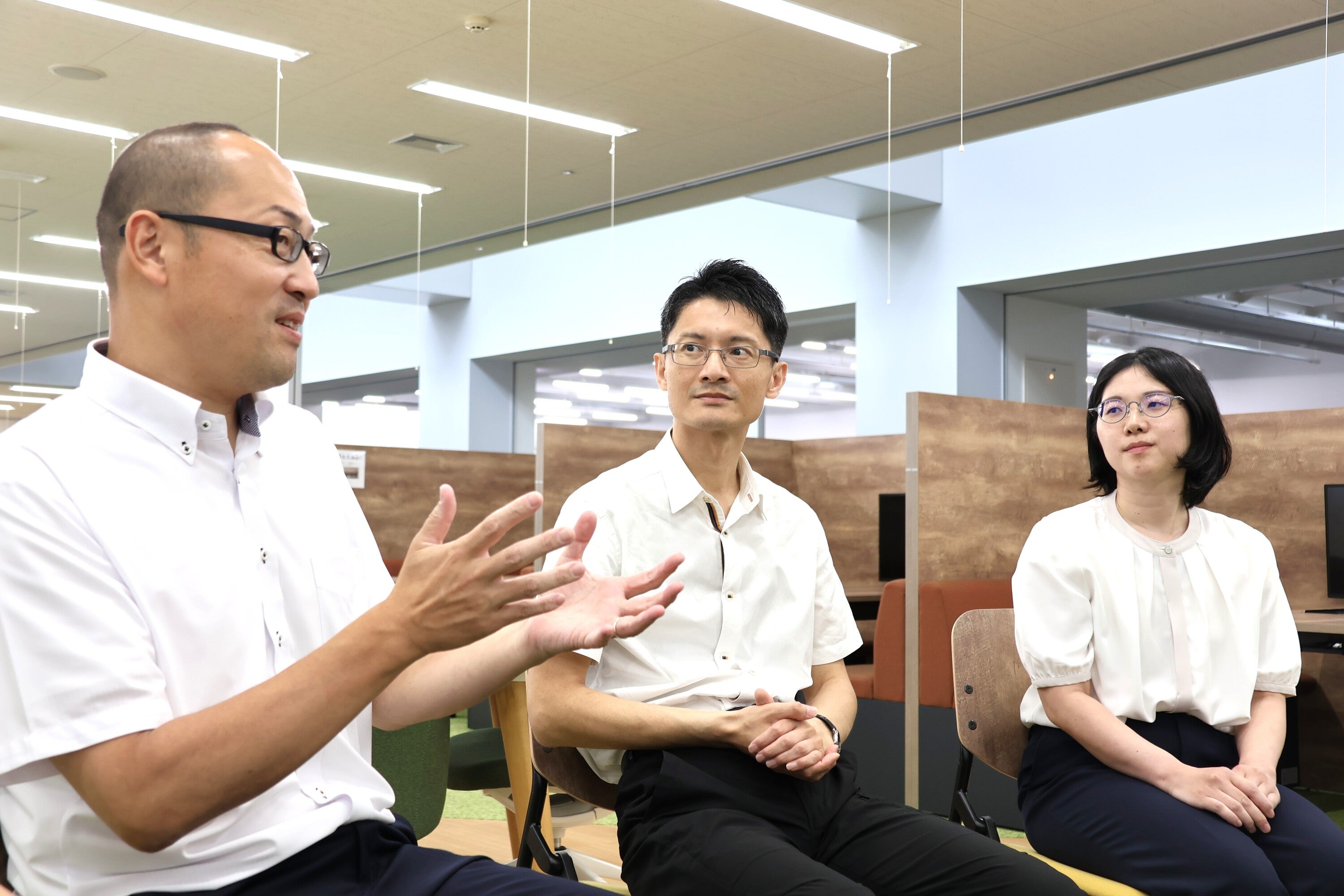 左から:商品開発を統括した小林さん、開発リーダーの田内さん、回路設計担当の村田さん