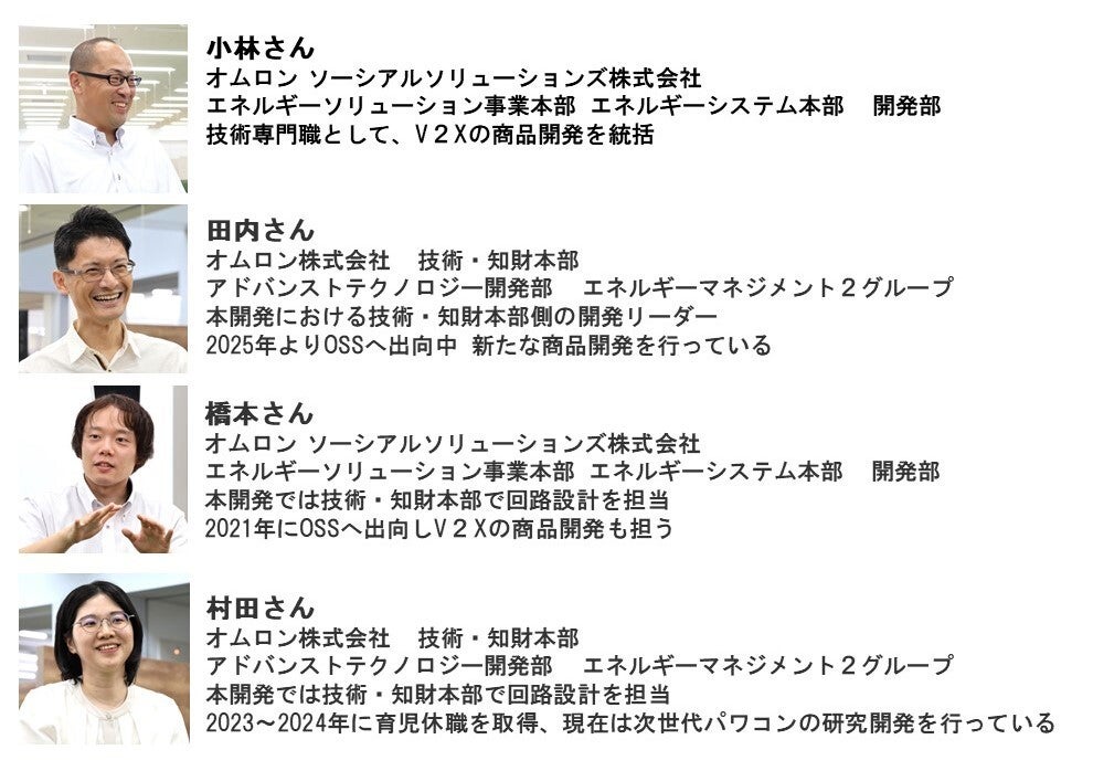 本記事では、社会的課題を解決した近未来の姿をデザインし、そこからのバックキャストで新技術の開発を推進する技術・知財本部と、エネルギーソリューション事業において顧客ニーズに基づく商品企画・開発を通じた社会実装を担うオムロン ソーシアルソリューションズ株式会社(OSS)、双方が連携して取り組んだ開発ストーリーに迫ります。