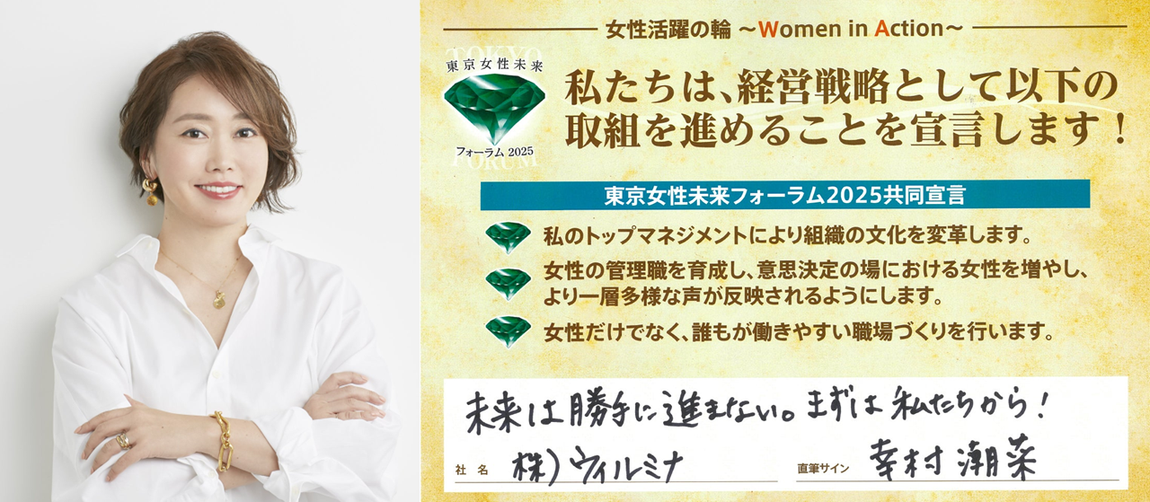 (写真)株式会社ウィルミナ 代表取締役社長・幸村潮菜。ウィルミナは、東京都の「東京女性未来フォーラム2025共同宣言」企業でもあります。