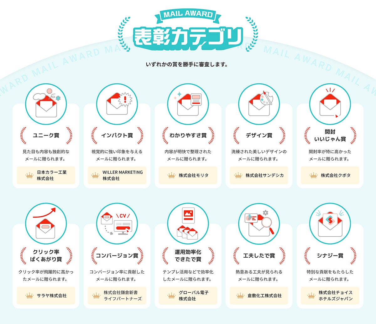 受賞企業様のメール本文や工夫した点、成果・効果、受賞理由の詳細は、こちらからご覧ください。