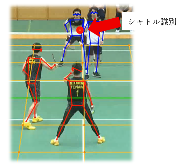 シャトル単体の認識だけでは、シャトルが空中にある際に自陣か敵陣かの判断が難しいため、選手のポジショニングも認識することで、シャトルの位置を正確に識別できるようになりました。