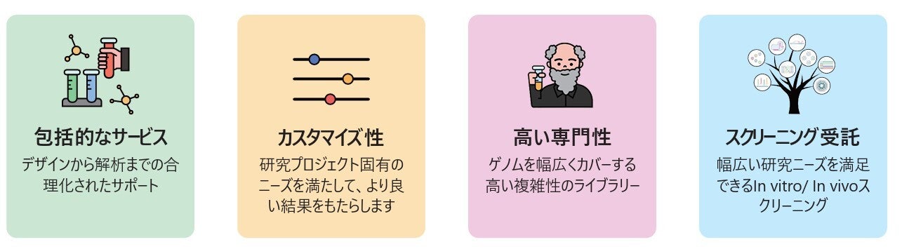 - ターゲットライブラリー:特定遺伝子セットや経路を標的にする。