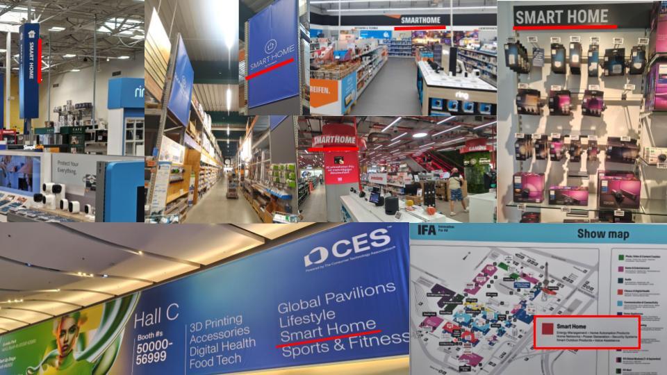 (海外の展示会や家電量販店・ホームセンターには当たり前にSmartHomeの表記が)